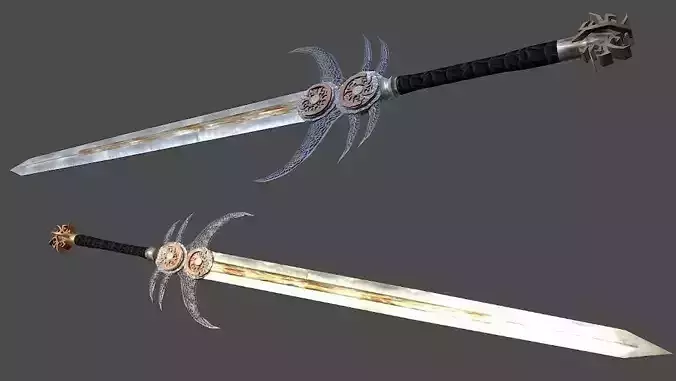 An older model of mine. Fantasy 2 hand sword.The set includes conventional model files alongside textures in .tga and .dds. You'll find specular,normal and diffuse maps.There is also a .fpe included for drag and drop as a prop into game guru. Please browse content list for more information :)