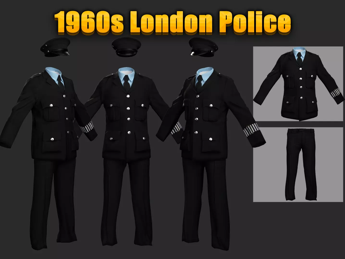 Step back in time to the 1960s with this meticulously crafted 3D model of a London Police Uniform, featuring every iconic detail that defined the era. This high-quality model includes: