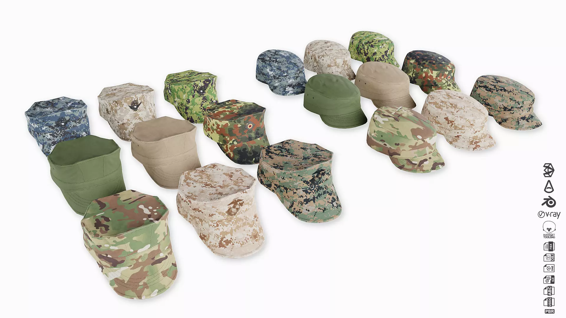 • Pre-made color variations: Coyote - Green - GER Flecktarn - US Army OCP - US Marines Desert Marpat - US Marines Woodland Marpat - US Navy NWU Type I - US Navy NWU Type II AOR 1 - US Navy NWU Type III AOR 2