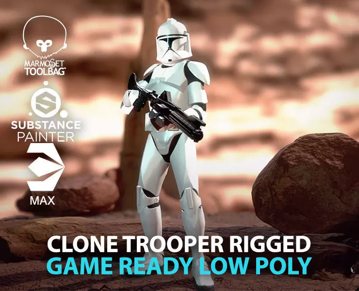 It was made in 3ds max , zbrush and painted in substance painter . It is based on the star wars classic battlefront 2 clone trooper phase 1.The T/A pose begins at -10 on the frame time line