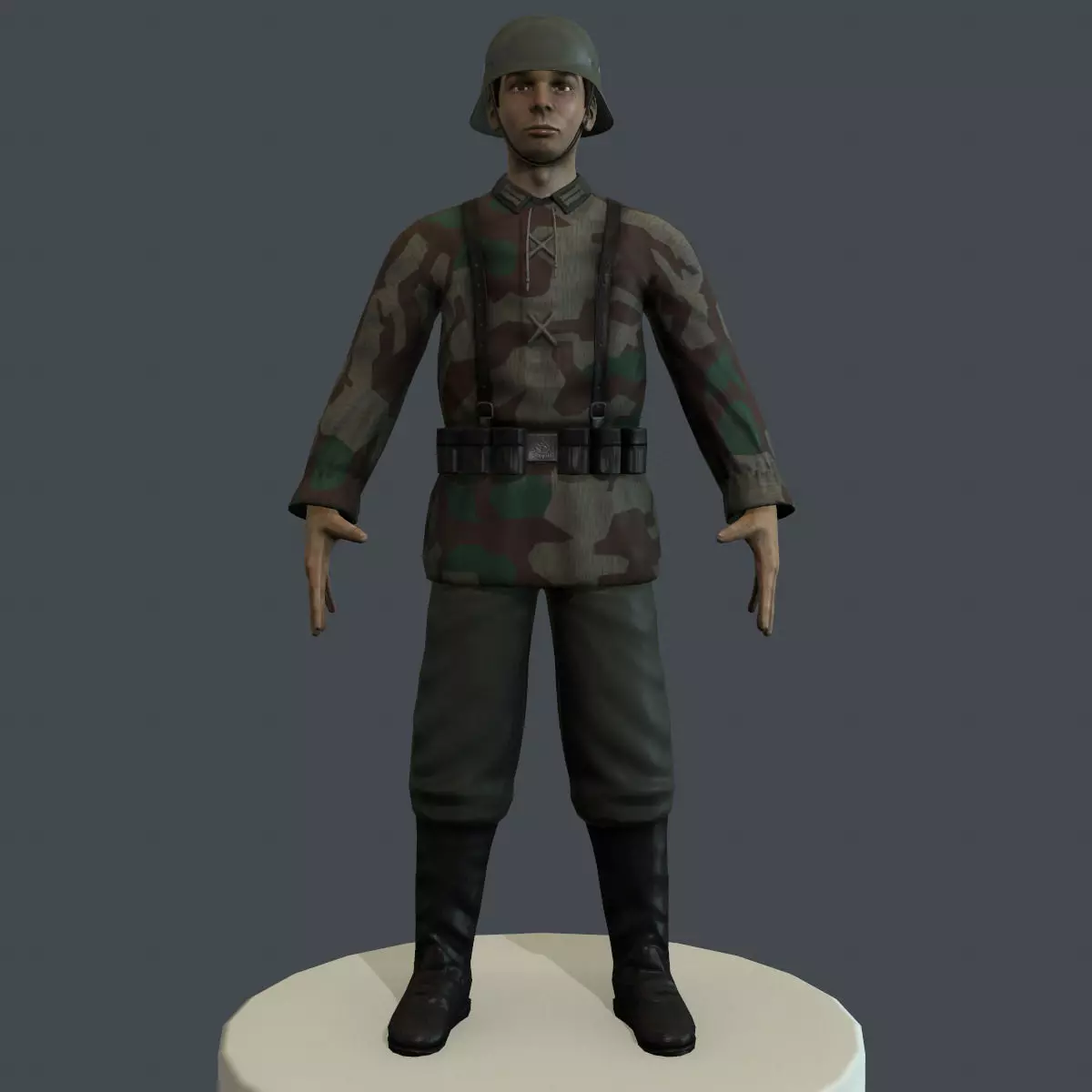 Lowpoly 3d model of german ww2 soldier for 3ds max 2011 and higher. Rigged with UDK standart skeleton, so all base animations from UDK work with this model.