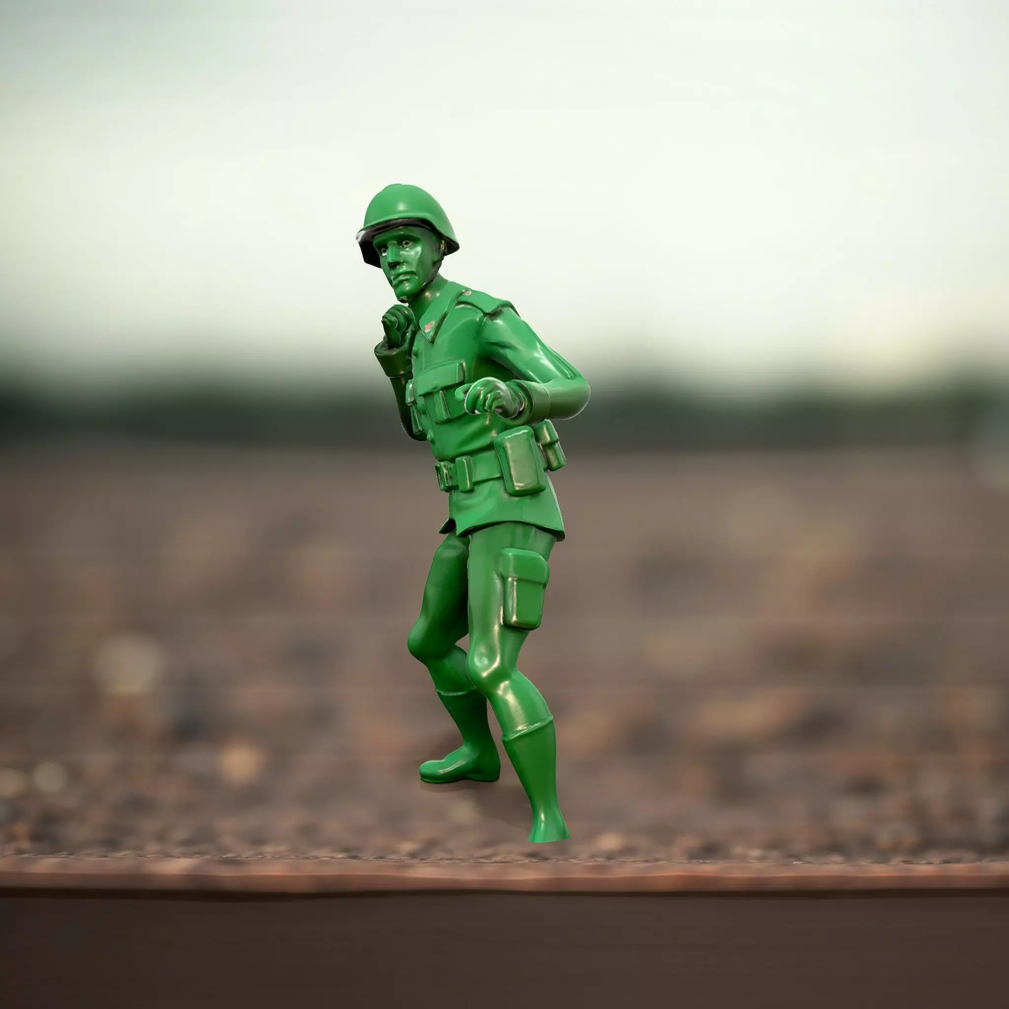 This is a detailed model of a classic green soldier figure, ideal for military-themed presentations, strategy games, and animations. Each model has 3 levels of detail: low-poly (1000 triangles for mobile), middle-poly (10,000 triangles for environment), and high-poly (100,000 triangles), which allows for the use of this model in production rendering (such as 3ds Max, Maya, Cinema4D, Blender, Vray/Corona/Cycles and all others), game engines (Unity and Unreal compatible), and interactive presentations, providing a choice of detail based on the LOD System principle. The model's textures are PBR, Diffuse, NormalMap, and reflection/roughness/metallic, suitable for any modern rendering engine. All models are accurately unwrapped and have no overlapping UVs. Textures are 4096*4096 in size.