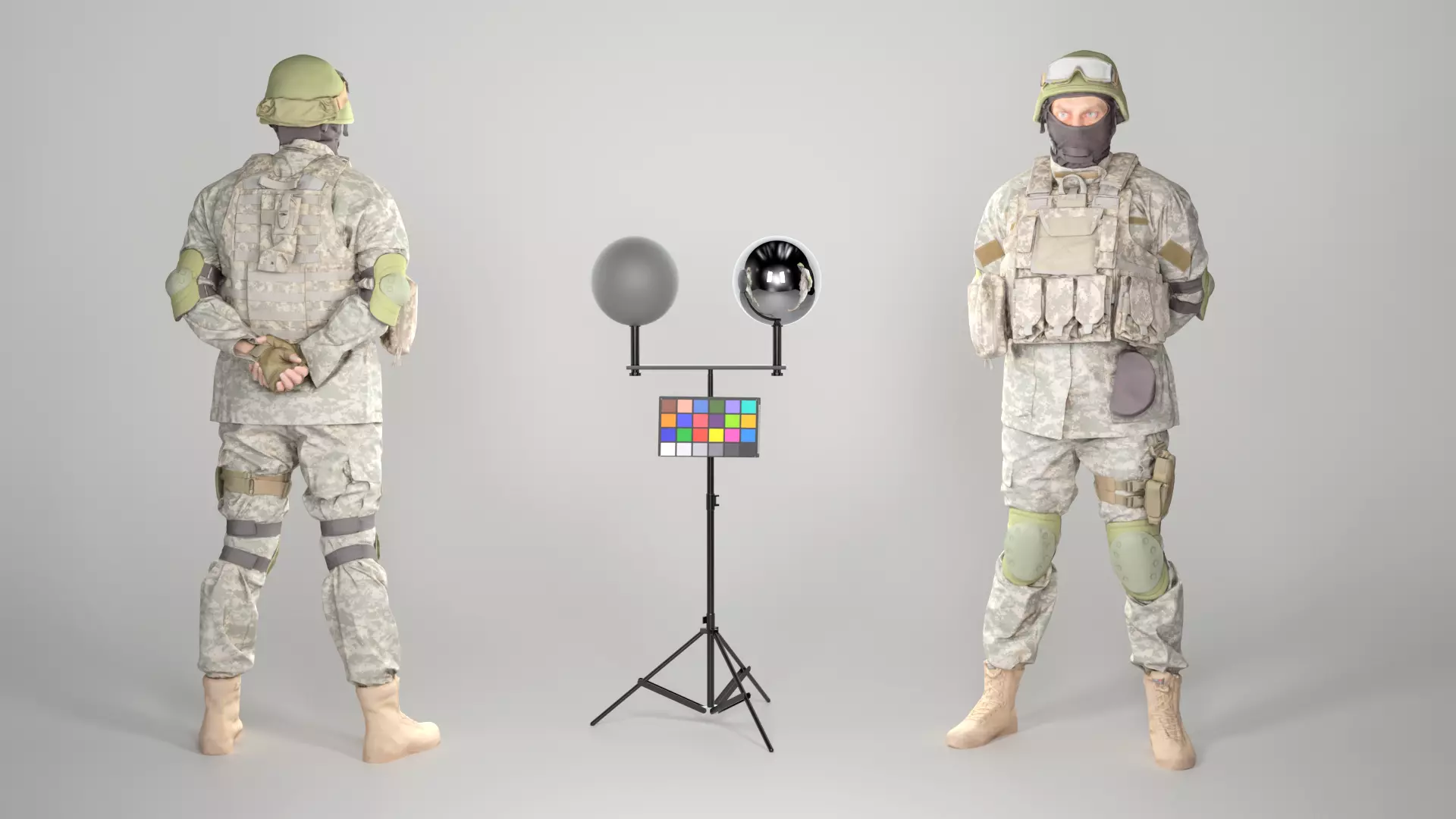 This is a true human size detailed model of a brave soldier dressed in American military uniform. The model is captured in casual pose to be perfectly matching to variety of architectural visualization, background character, reconstruction, performance, etc.