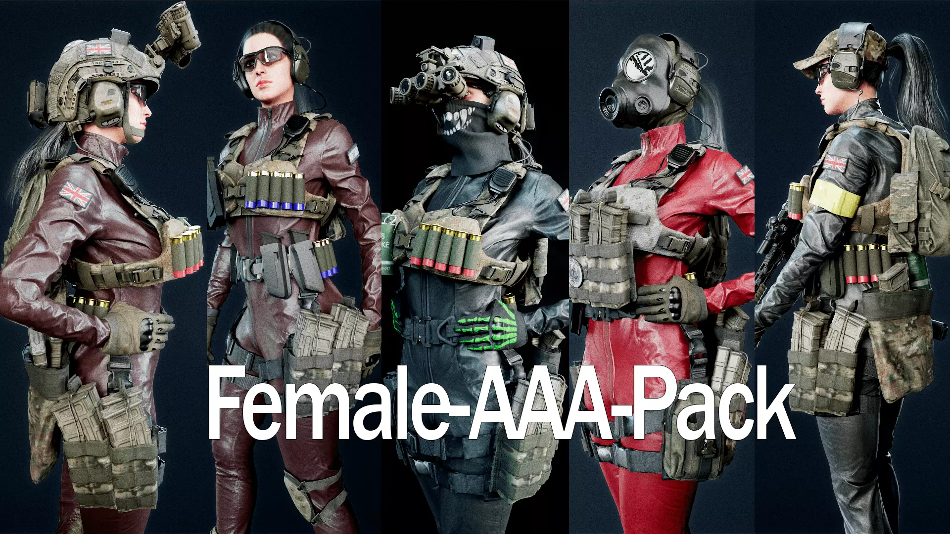 This is a high-end AAA modular female soldier character, built using a professional production pipeline and designed for real-time games, cinematics, and commercial projects.