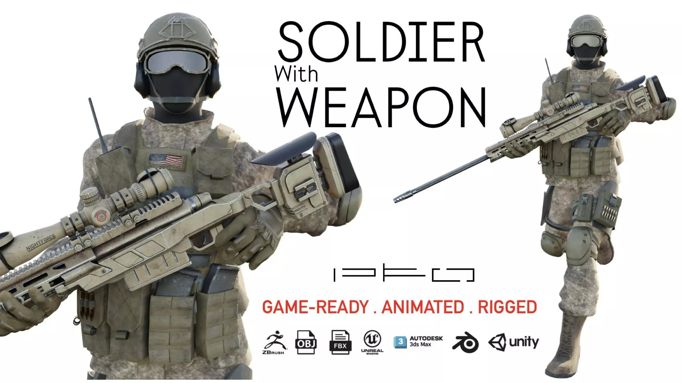 Modern Combat Soldier is a highly realistic and fully equipped 3D military character, designed for real-time applications in modern warfare games, tactical simulators, and cinematic battle scenes. This soldier is fully rigged, animated, and carries a detailed scoped rifle, tactical gear, and protective armor.