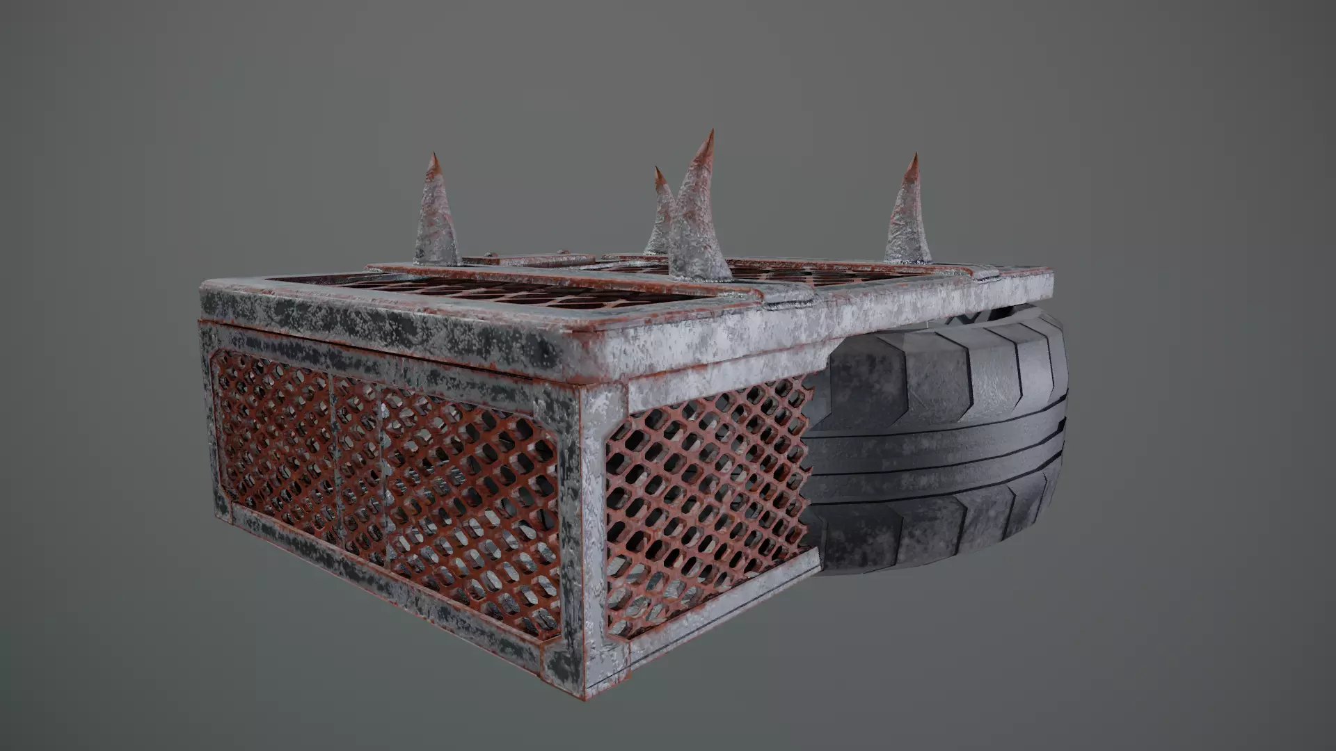 Product Description A brutalist Raider Chest crafted from a salvaged heavy-duty truck tire and welded metal grates. This asset perfectly captures the aggressive, resourceful spirit of post-apocalyptic biker gangs and wasteland survivors.