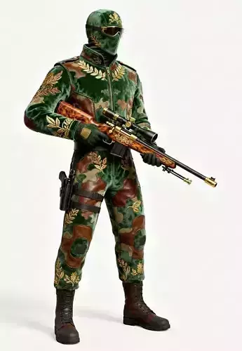 The Overall Concept This asset is a luxurious, high-fashion take on traditional forest reconnaissance gear. It merges the tactical silhouette of a professional marksman with the opulent aesthetics of European royalty, making it perfect for an elite hunter, a royal bodyguard, or a prestige-tier sniper skin.