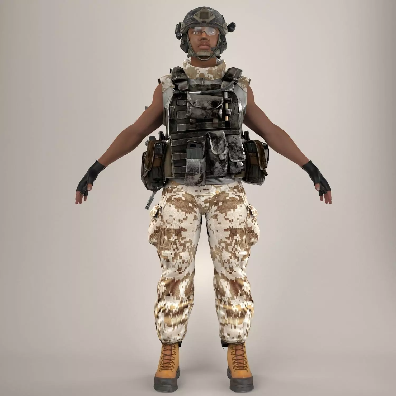 The high Quality polygonal 3d model of the Ultimate Black Soldier named Maurice (Mot Rigged).