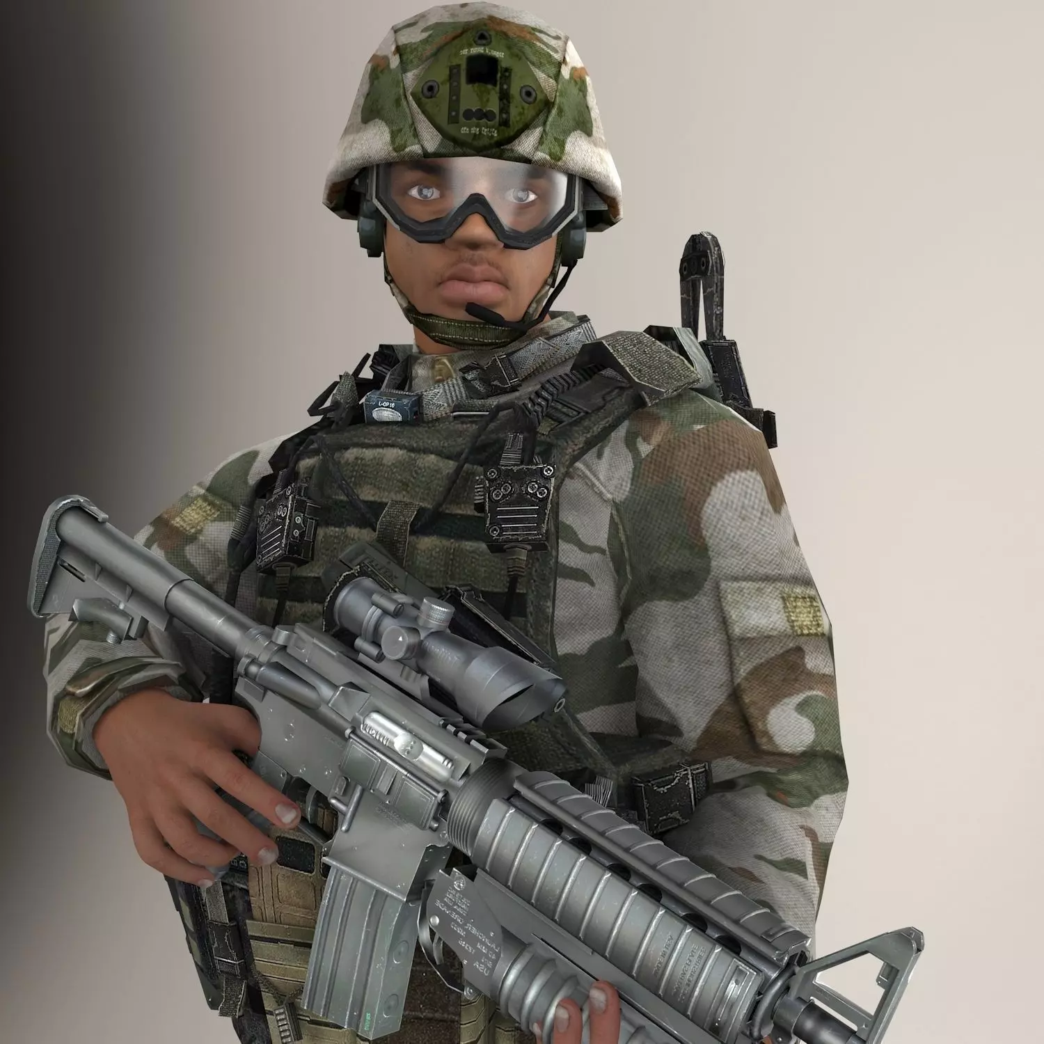 Model is Rigged With biped + Skin. Model contains 1 sets of equipment everything shown on the renderings is included.