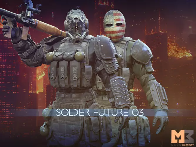 Rigged:(Yes)Vertex counts of characters:Soldier Future 03:89,291Rocket launcher:18,706Number of Textures:19Texture Resolutions:Character:Normals,Ao,Albedo,Metalli,Emmisive(4096-4096)Rocket launcher:Normals,Ao,Albedo,Metallic(4096-4096)