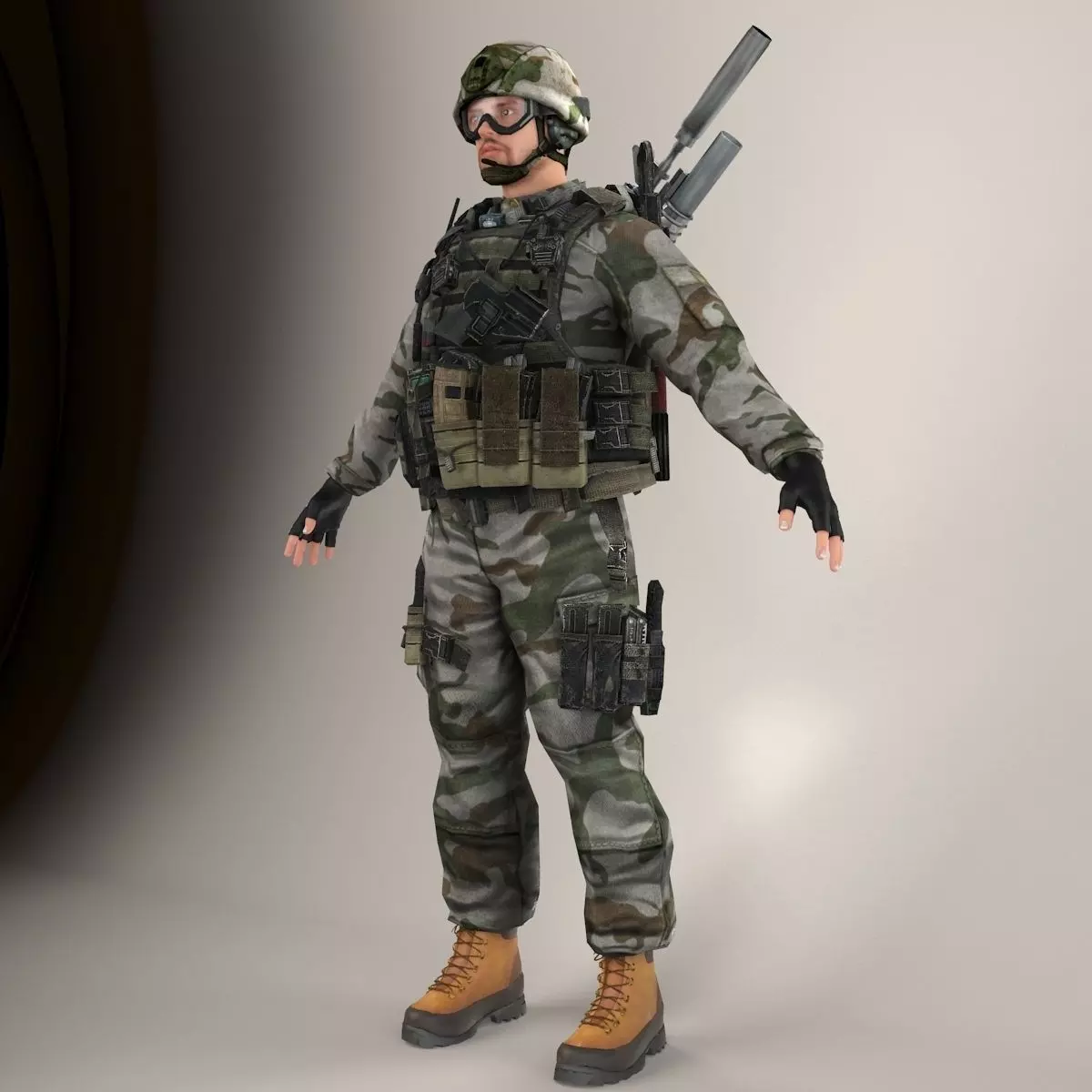 The high Quality polygonal 3d model of the Soldier Lite V1 named Jack (Rigged).