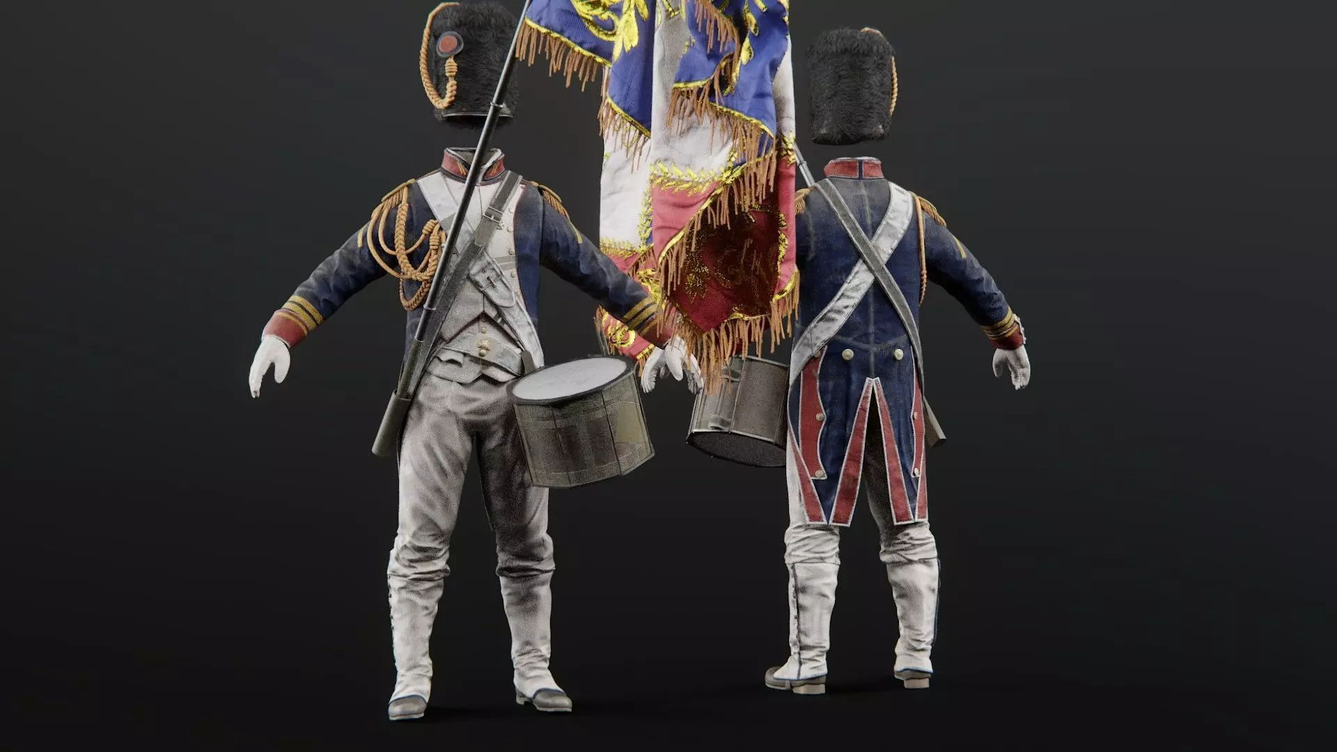 FRENCH NAPOLEON GRANDE ARMEE SOLDIER 3D French napoleonic flag bearer uniform from the french empire Grande armée modeled in high precision ( fusilier grenadier ). this is a mix between several references i found. this model has been accurately recreated in 3d High poly to keep every details.