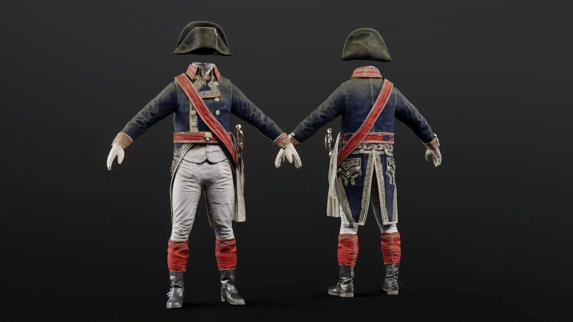 FRENCH NAPOLEON GRANDE ARMEE SOLDIER 3D French napoleonic General high rank uniform from the french empire Grande armée at Marengo Battle ( high rank, marechal, general, colonel ), modeled in high precision. this is a mix between several references i found. this model has been accurately recreated in 3d High poly to keep every details.