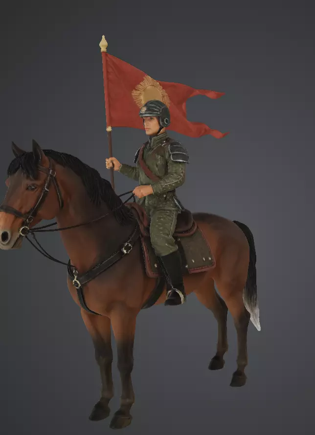 this 3cd modle dipics of a soldier holding his flag. On the back of his hoarse.
