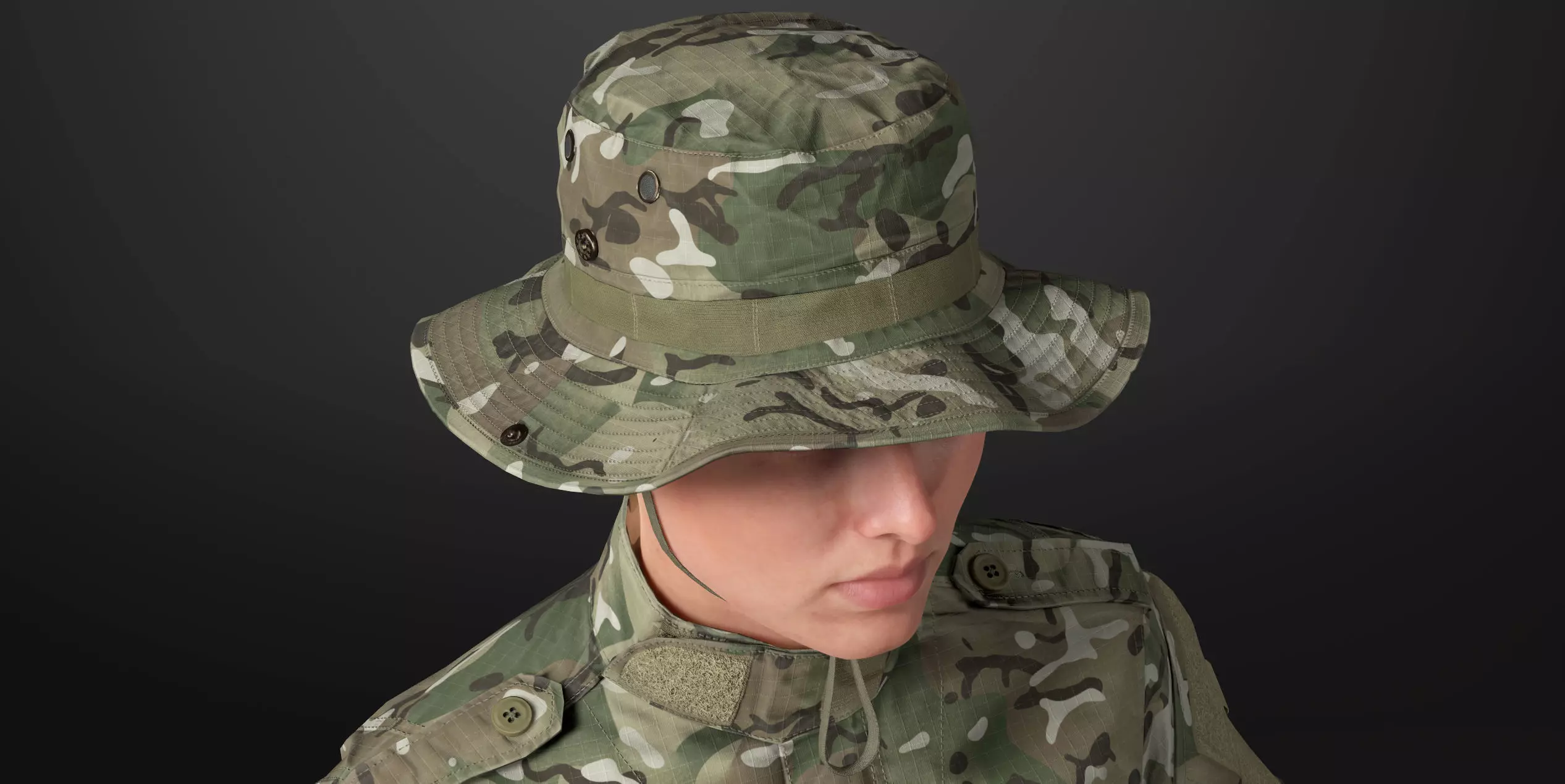 The definitive tactical boonie hat for MetaHumans, meticulously crafted for unparalleled authenticity. Designed from the ground up for Unreal Engine 5, it delivers the realism and flexibility serious creators demand. Every detail, from PBR fabric and stitching to studio-grade topology, has been carefully considered to deliver exceptional realism and performance in real-time environments. Geometry is optimized for AAA games, sitting at 2530 verts.