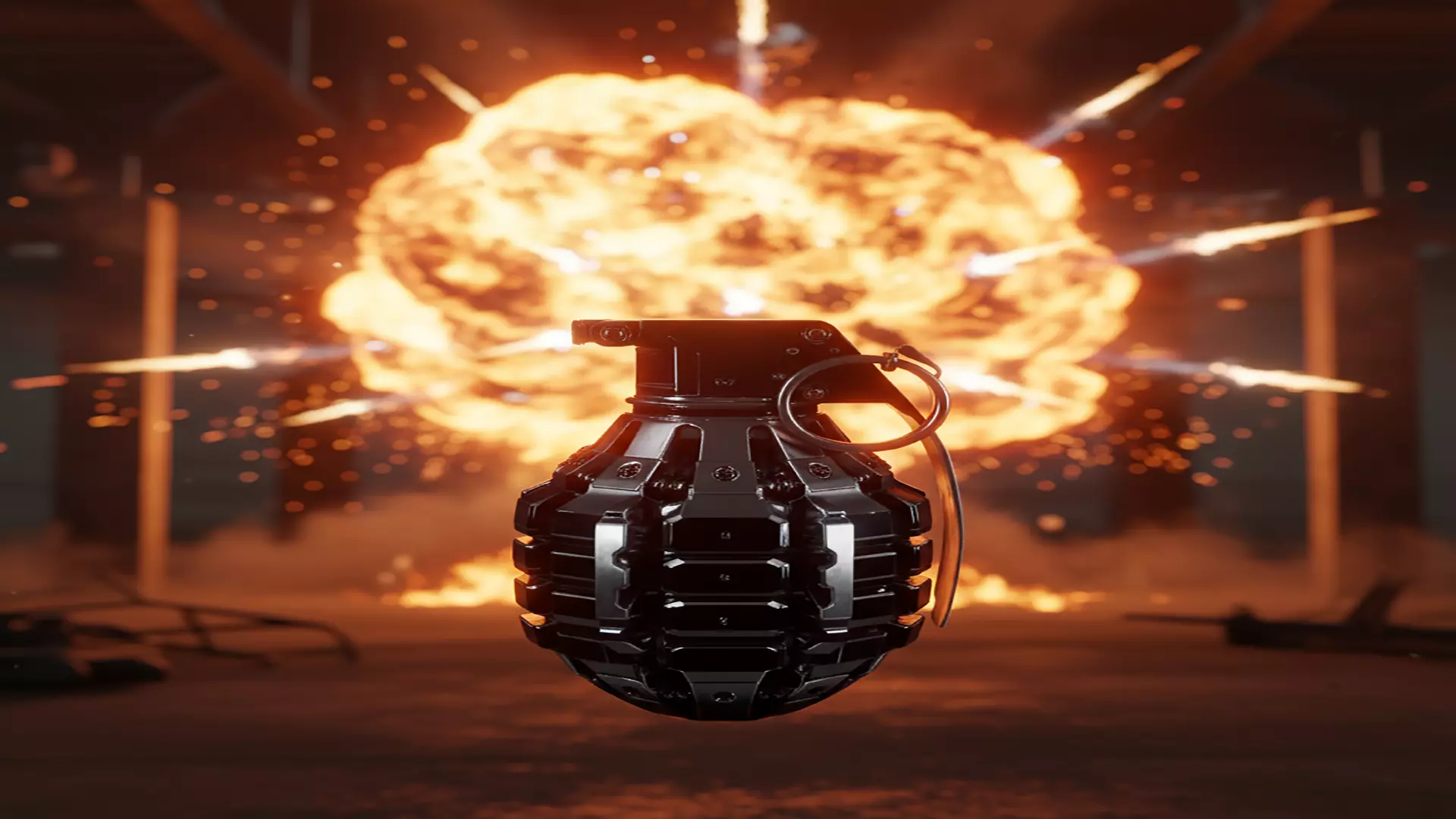 A highly detailed 3D model of a modern tactical fragmentation grenade, designed with precision and realism. This asset features a rugged metallic body with segmented casing, realistic pin and safety lever, and finely crafted mechanical details. Ideal for use in game development, cinematic scenes, military simulations, and high-end renders. The model showcases realistic materials, sharp edges, and a polished dark metal finish, making it perfect for close-up shots and professional projects.