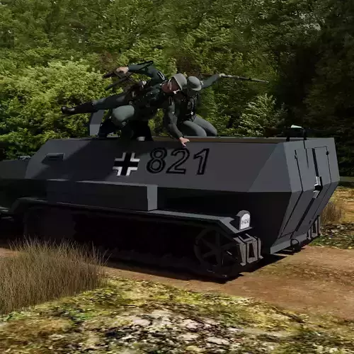 The Sd.Kfz. 251 (Sonderkraftfahrzeug 251) was a World War II German half-tracked armoured personnel carrier. Designed by the Hanomag company to transport the Panzergrenadier (German mechanized infantry) into battle, the Sd.Kfz. 251 was based on its earlier unarmored Sd.Kfz. 11 vehicle. Sd.Kfz. 251s were the most widely produced German half-tracks of the war, with at least 15,252 vehicles and variants produced by seven manufacturers. The utility of this vehicle led the German Army to develop the similar looking but shorter and lighter Sd.Kfz. 250 as a supplement.This model I have built the 251 variant as well as the 251 dash 2 mortar carrier Variant