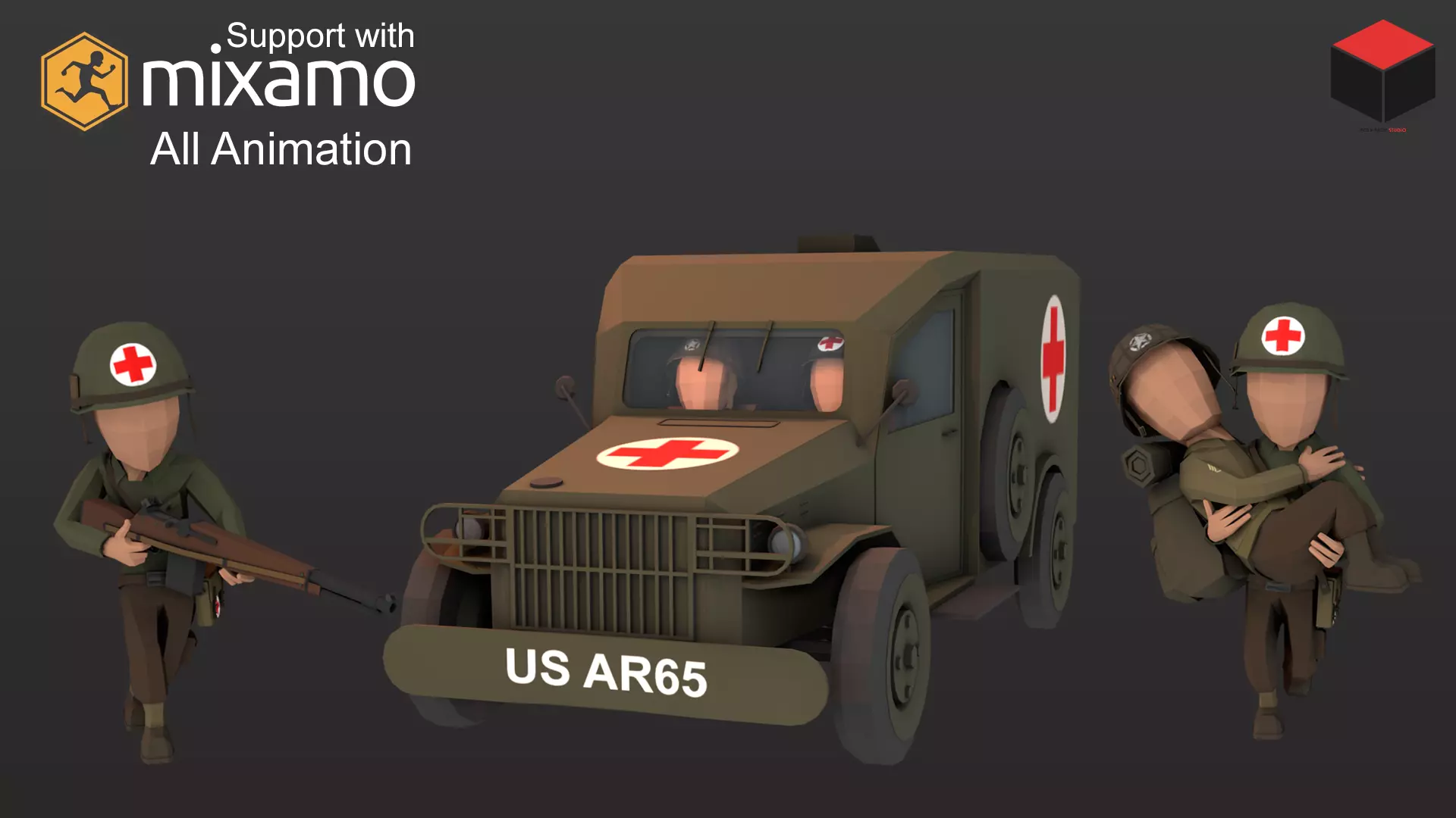 WW2 US Medic Characters - DodgeWC-54 Ambulance-Medical Crate-Medkit-Bandage-Carbine Rifle- Pistol- Knife /Game Ready /Rig/ All Animation MİXAMO Textures: Base Color/Metallic/Roughness/ AO Map Texture Textures: 2048x2048.png