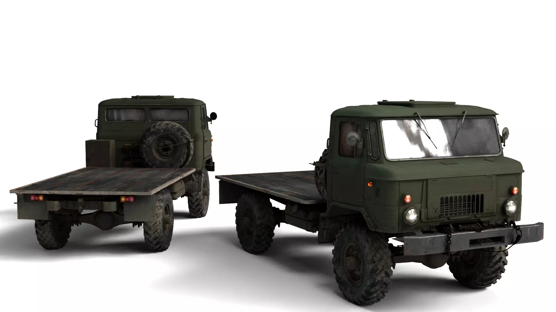 The 1966 GAZ 66A 3 is a fully rigged, high-detail 3D model of the iconic Soviet military truck — ideal for real-time games, simulations, cinematic animations, and historical visualizations. This variant provides another unique setup of the GAZ 66A platform, allowing creators to diversify vehicle fleets with authentic variations.Modeling focuses on real-world accuracy, featuring the signature boxy cab, reinforced bumpers, utility wheels, spare parts, exhaust system, and rear cargo bed — all cleanly modeled with proper detailing. The model also includes a basic interior, complete with seating, a dashboard, and steering controls for cockpit shots or vehicle-based scenes.The model is rigged for animation, including wheel rotation, steering linkage, and suspension controls, making it animation-ready for your custom rigs or game logic. Built with clean quad topology, the model is fully UV unwrapped, real-world scaled, and subdivision-friendly, ensuring flexibility across all production pipelines. Compatible with Blender, Unity, Unreal Engine, and other major tools.