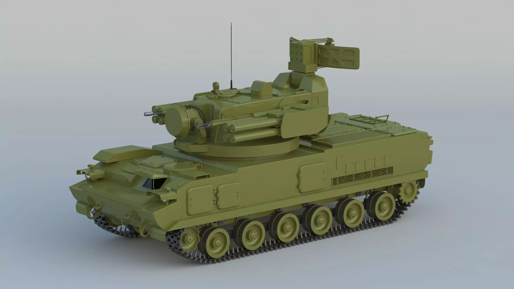 **The 2K22 Tunguska (Russian: 222 '') is a Russian tracked self-propelled anti-aircraft weapon armed with a surface-to-air gun and missile system. It is designed to provide day and night protection for infantry and tank regiments against low-flying aircraft, helicopters, and cruise missiles in all weather conditions. Its NATO reporting name is SA-19 'Grison'.