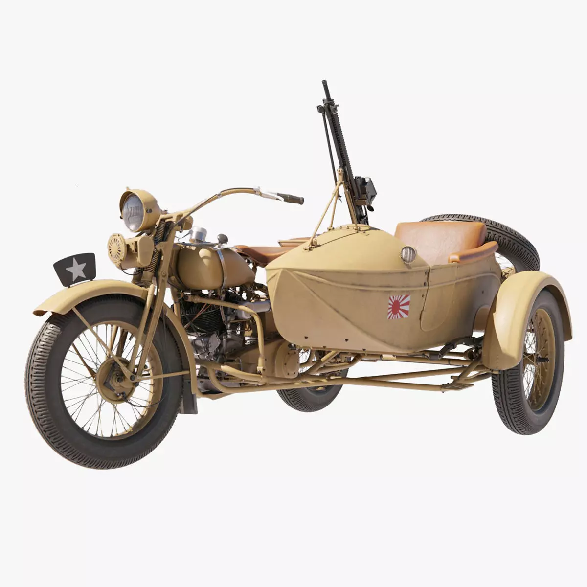 The model includes all its subdivision levels available, from 0 to 3, and features regular controls to easy manipulate wheels, steering, gun, sidecar door and front light cover. Simply click on a control, and rotate it to move these parts.Shape keys have been created to allow the wires deform nicely along with the steering.