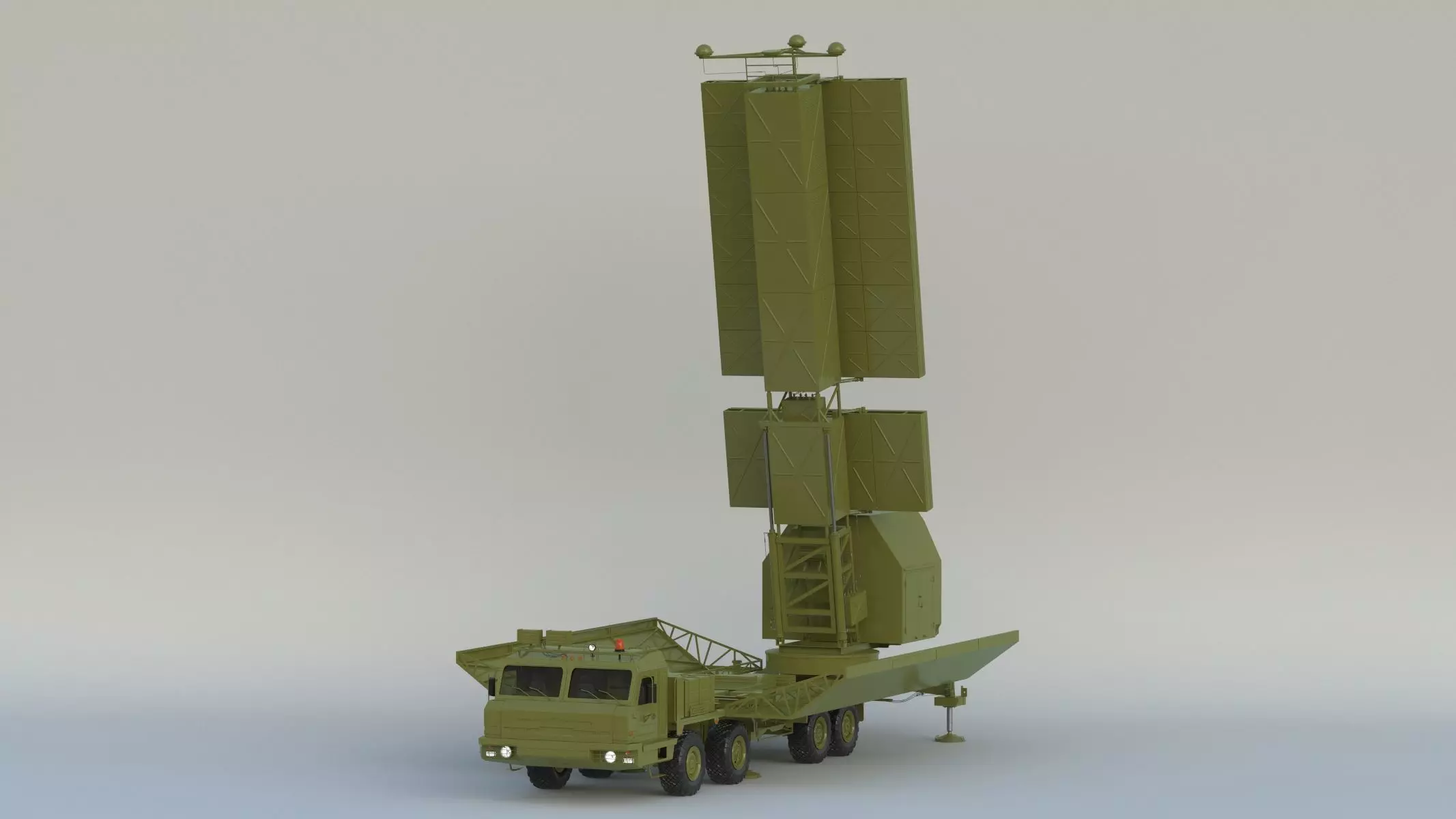 The Nebo-M or Nebo-ME also known as RLM-ME or 55Zh6ME is an integrated multi-functional radar system that features a multiple programmable multi-band design radars and a central data fusion. The radar began to be investigated in 1984. The radar complex is made up of a command post module and one to three different radars which are deployed on separate 8x8 24-ton trucks. The manufacturer claims this radar system can detect 5th generation aircraft like the F-22 and F-35 and detect long-range ballistic missile launches. Nebo-ME is an export version with some degraded characteristics.