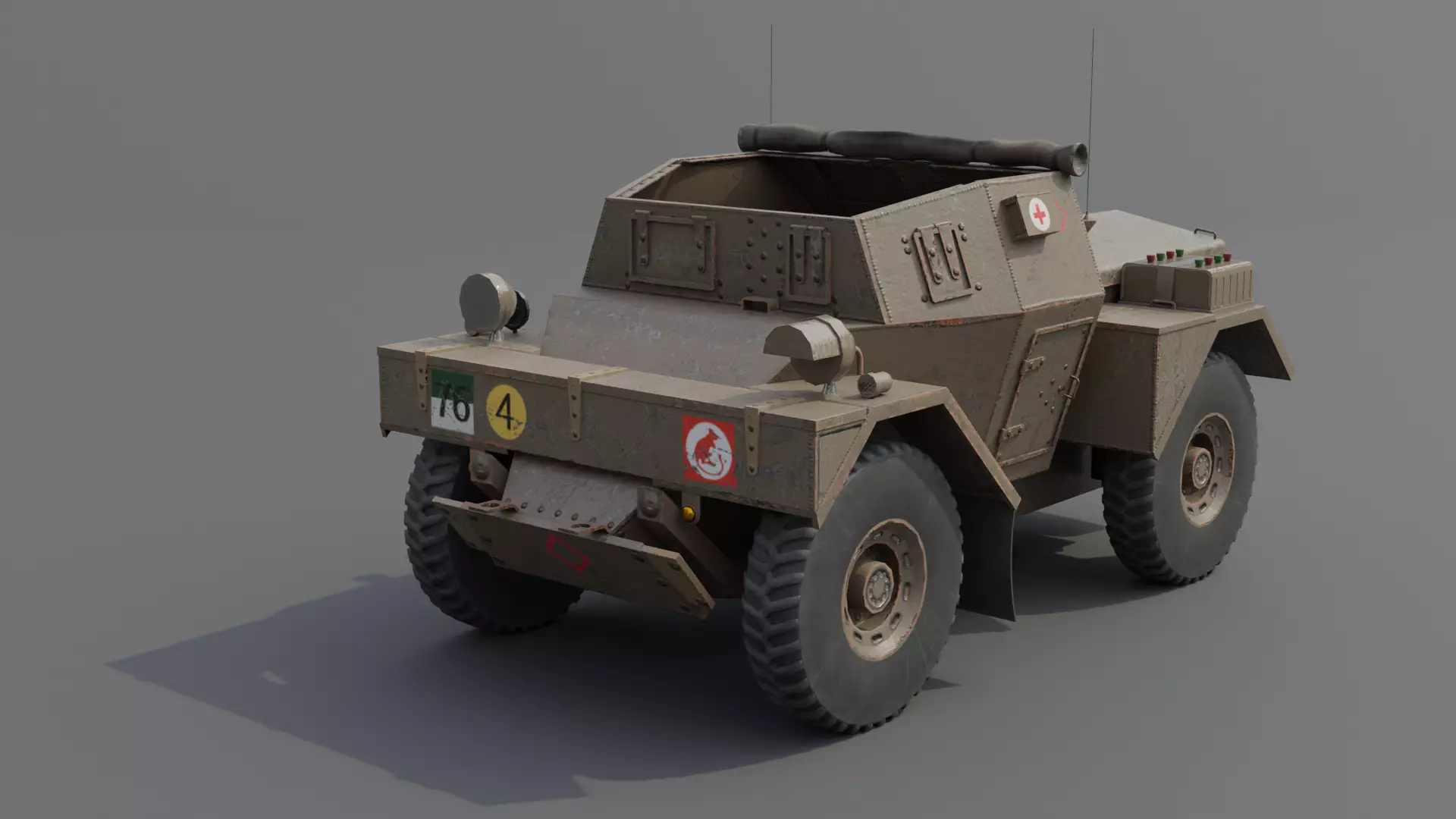 Description:The Daimler Scout Car, known in service as the Daimler Dingo (after the Australian wild dog), was a British light, fast four-wheel drive reconnaissance vehicle also used for liaison during the Second World War.In 1938, the British War Office issued a specification for a scouting vehicle. Three British motor manufacturers, Alvis, BSA Cycles and Morris, were invited to supply prototypes. Alvis had been in partnership with Nicholas Straussler and provided armoured cars to the Royal Air Force, Morris had participated in trials and production of armoured cars and BSA Cycles – whose parent Birmingham Small Arms (BSA) was involved in armaments – had a small front wheel drive vehicle in production.