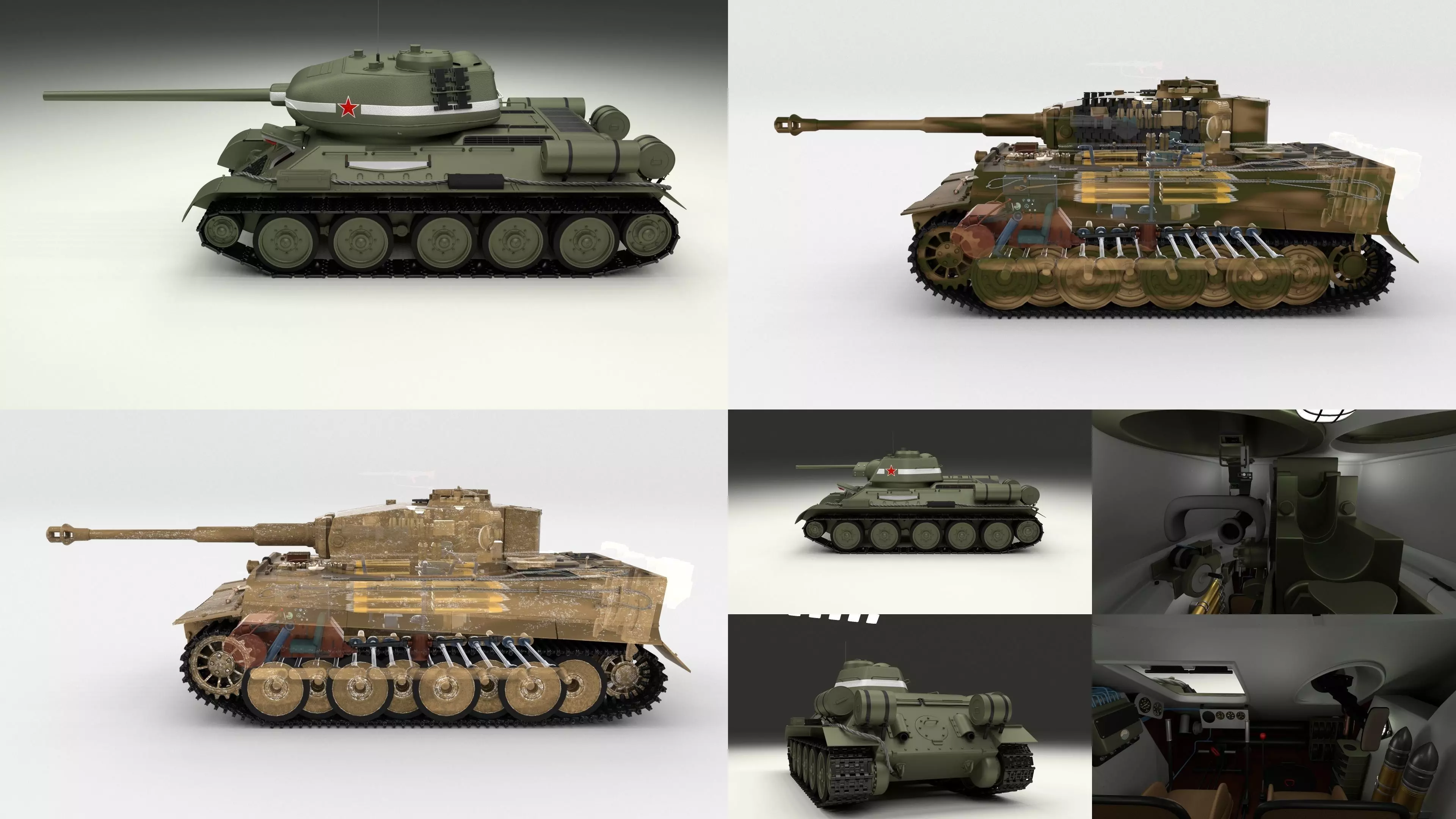 -Panzer Tiger Early Model with interior-Panzer Tiger Late Model with interior-T34-76 with interior-T34-85 with interior