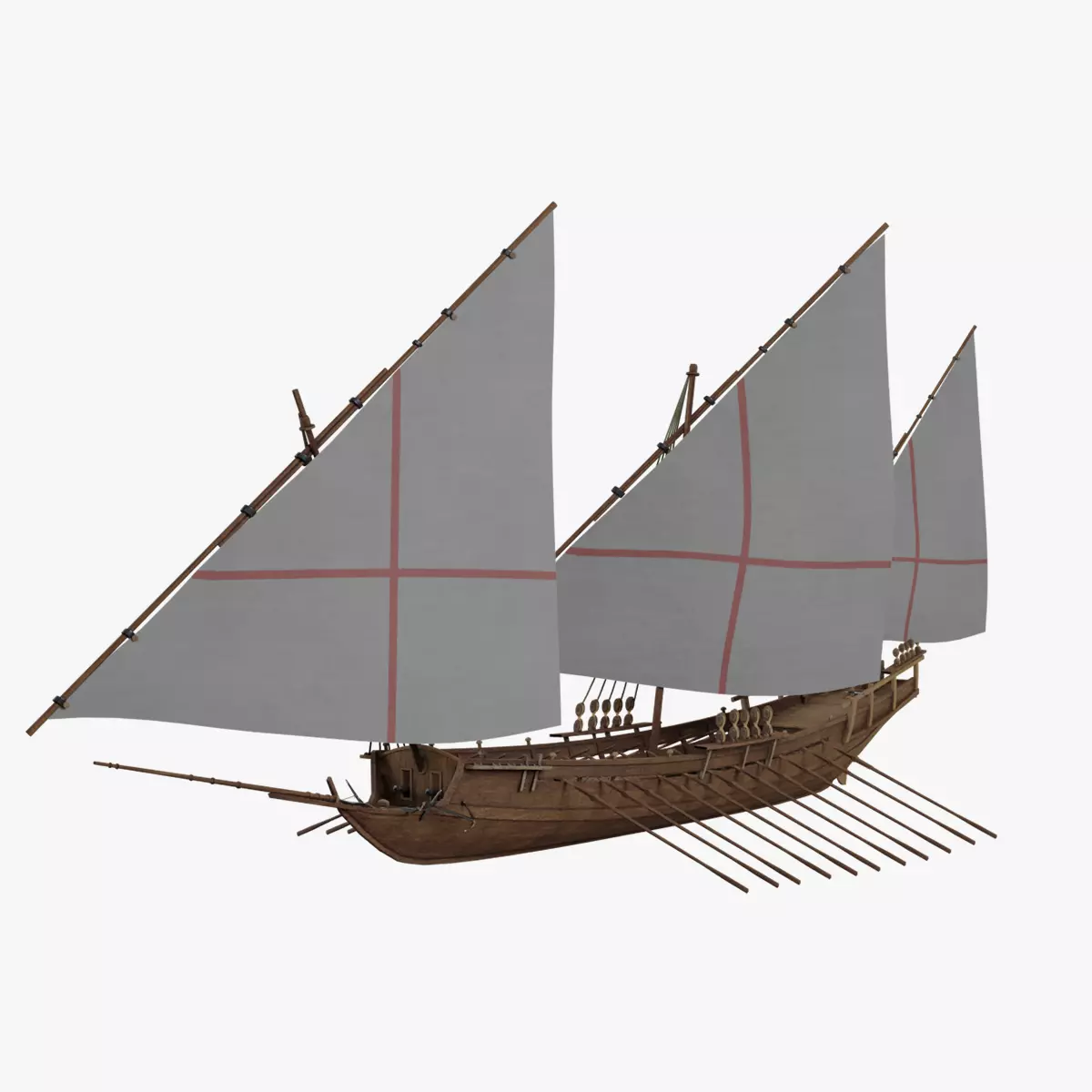 Professional Rigging: Completely ready for animation. Sails, masts, the rudder, and oars are easily controllable and animatable.