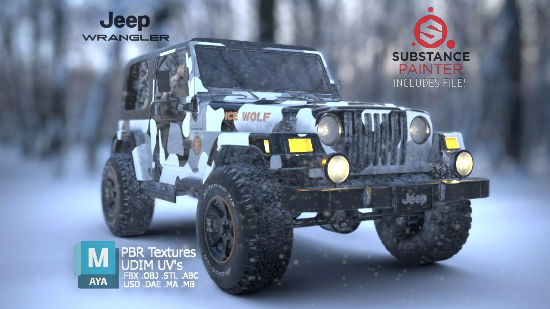 Description:This is a 1998 Jeep Wrangler but customized to look like a winter-themed Jeep Wrangler. I saw some references of someone customizing their Jeep to look similar to this design. It looked like fun so I decided to do a variation of it.