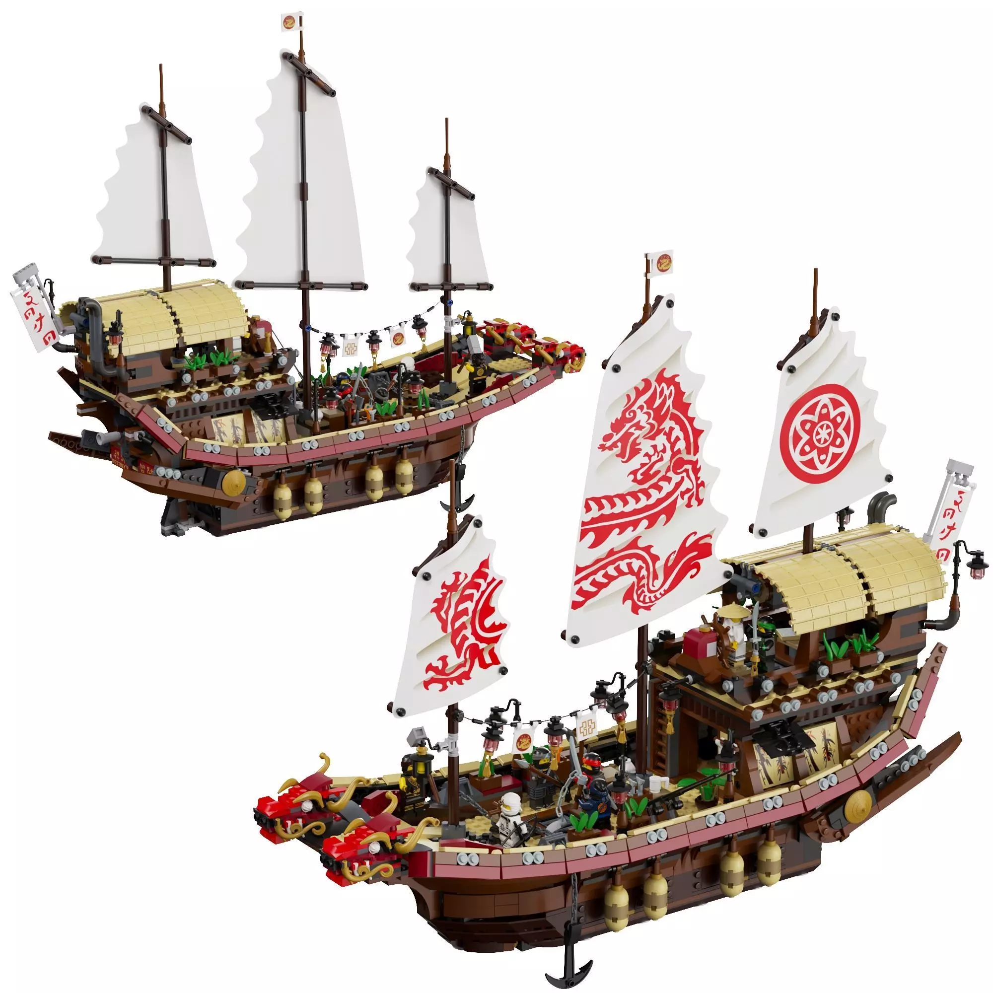 The LEGO 70618 Destiny's Bounty is a magnificent and intricately detailed model of the iconic flying ship from the LEGO NINJAGO series. This set features the ship’s elaborate design with a dragon head, ornate sails, and plenty of room for the ninja crew. Packed with accessories and mini-figures of the NINJAGO heroes, Destiny's Bounty offers fans a chance to recreate epic battles and adventures. Perfect for NINJAGO enthusiasts and LEGO collectors, this ship serves as a stunning display piece and a centerpiece of any NINJAGO collection.
