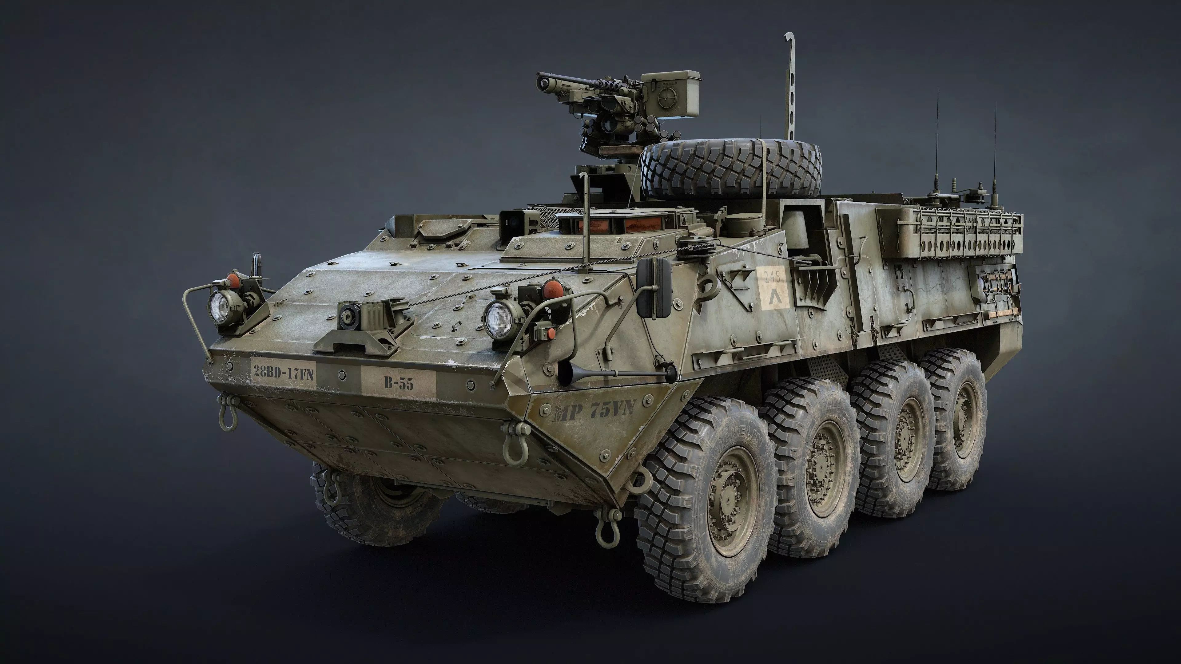 This is a highly detailed, game-ready 3D model of the American M1126 Stryker.
