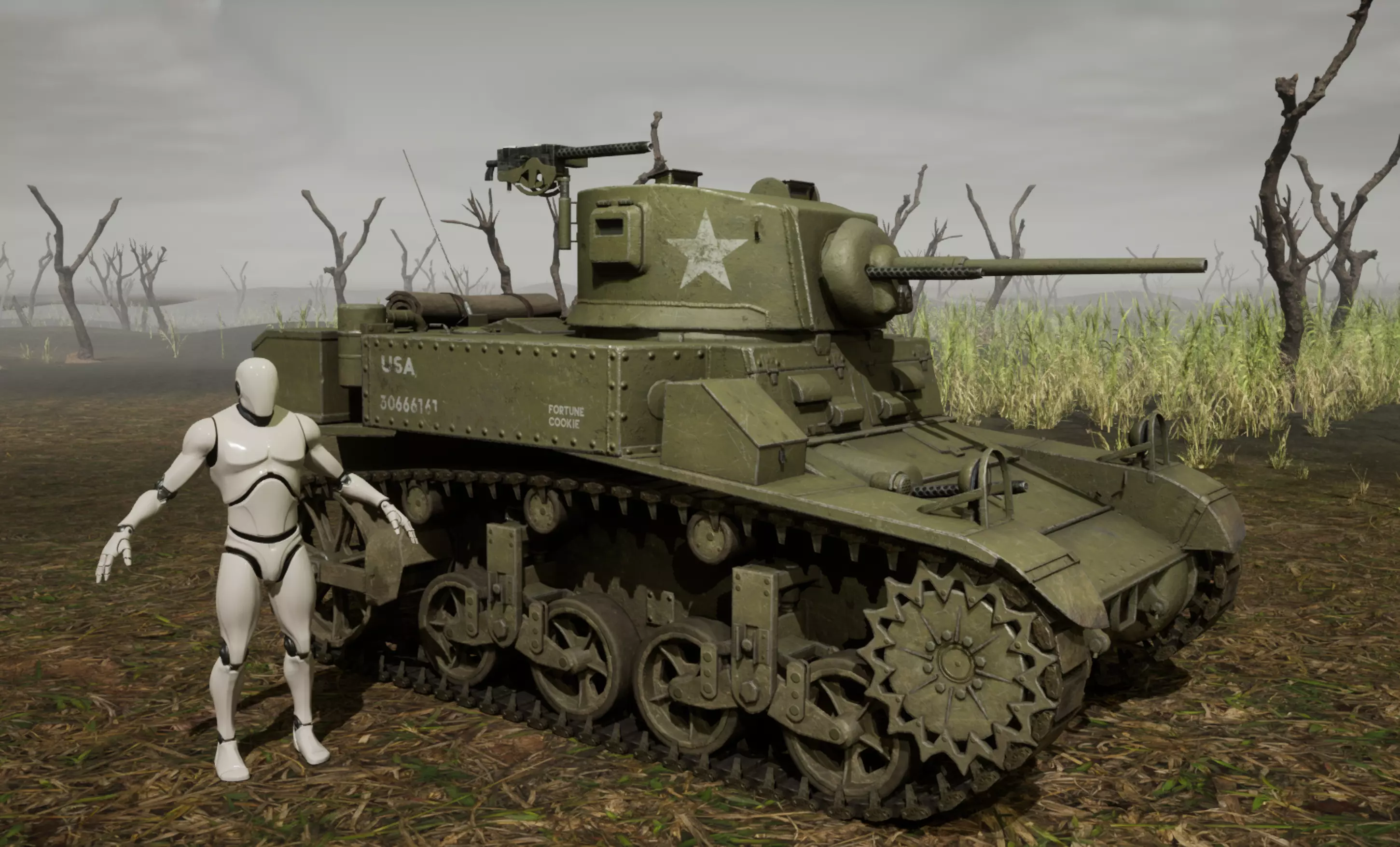 This model of the Stuart tank is the best one I've been able to find. With all the PBR textures loaded and tweaked the illusion of realism is perfect. Even better, it's also the cheapest accurate 3D model of the Stuart tank anywhere.