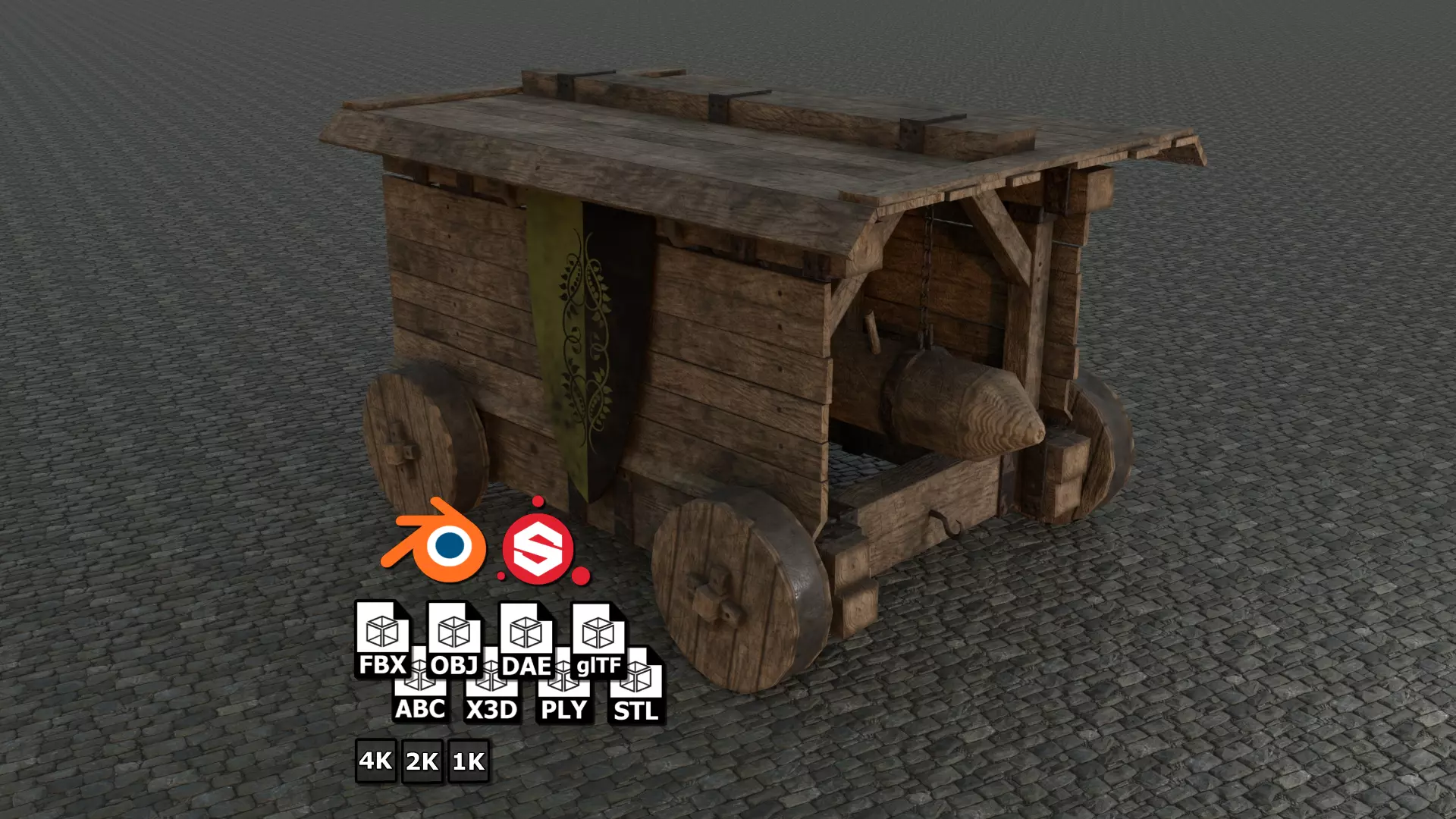 Medieval Battering Ram low-poly PBR Low-poly 3D model