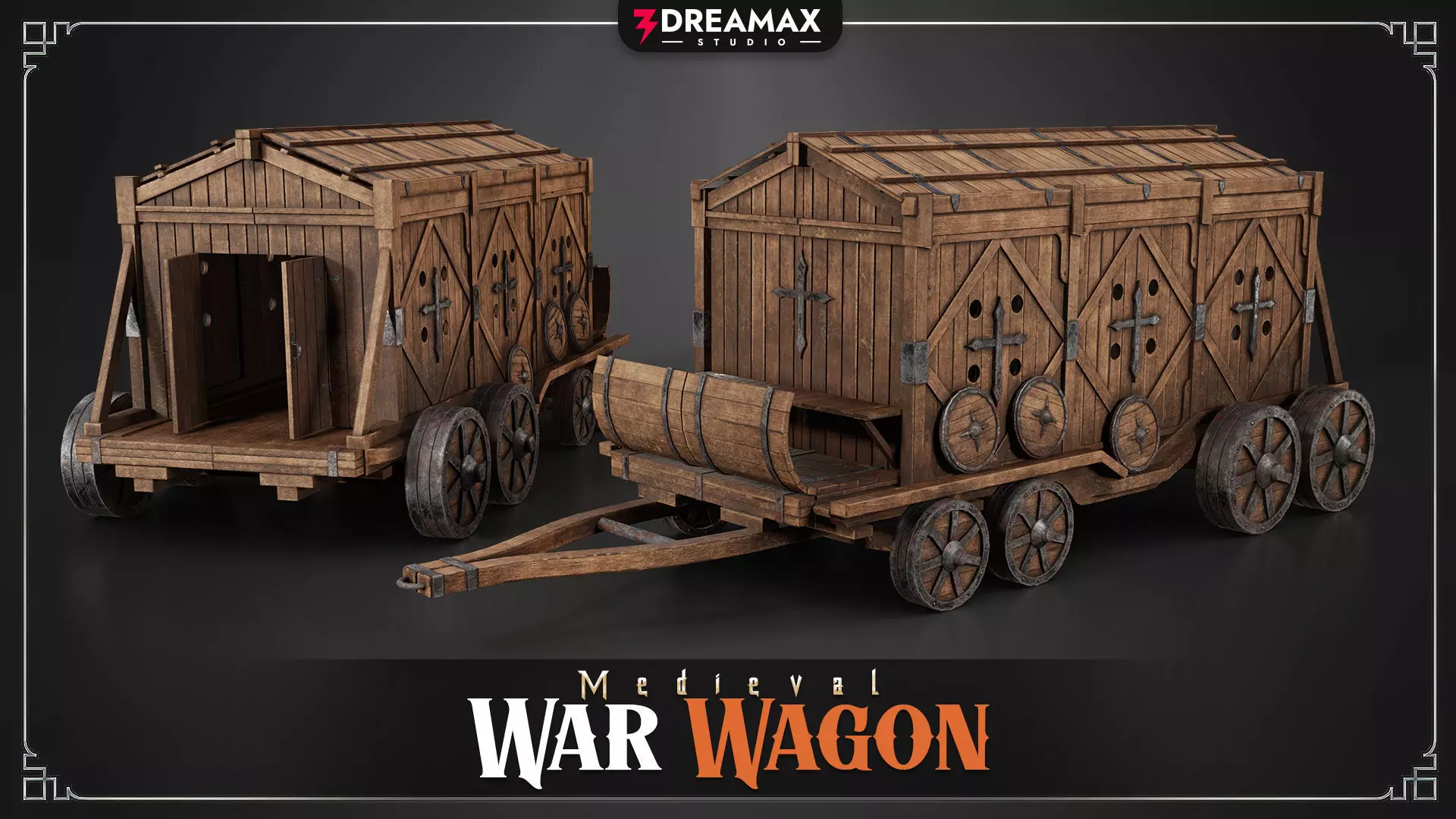 Medieval War Wagon – Armored Battle Carriage | War Shield vehicle | PBR | 4K Textures