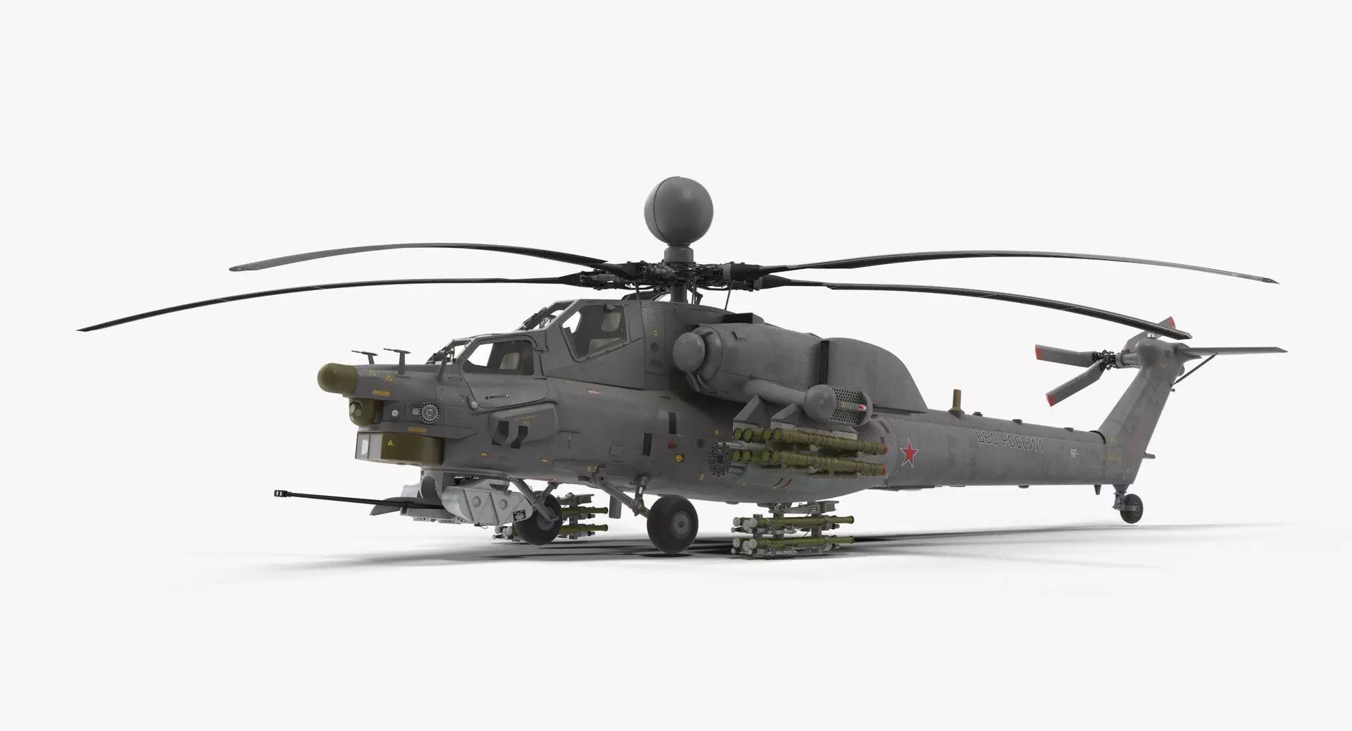 This Mi-28N Gray is a high quality, photo real model that will enhance detail and realism to any of your rendering projects. File units - cm. The model has a fully textured, detailed design that allows for close-up renders, and was originally modeled in 3ds Max 2014 and rendered with V-Ray.