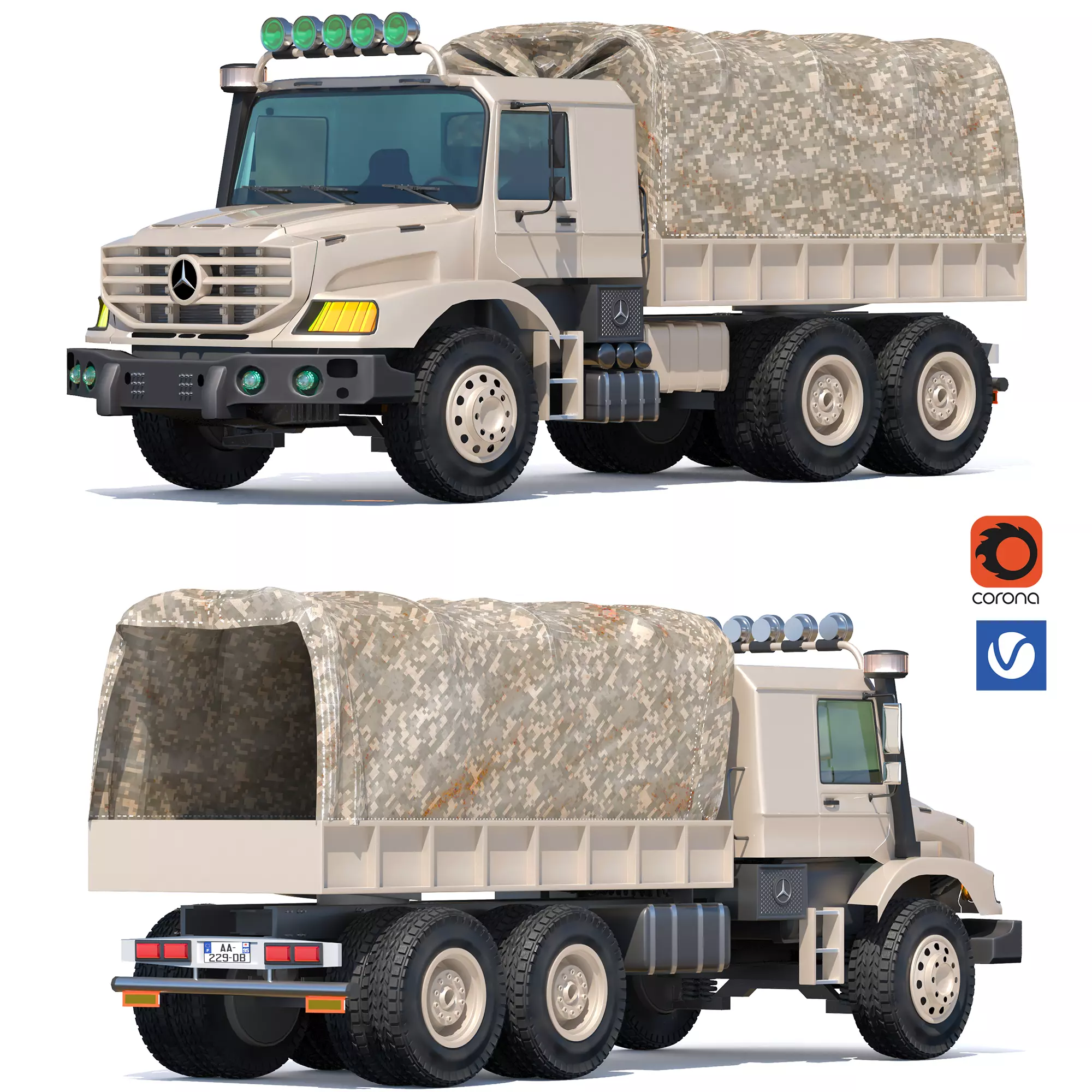 Hello dear designersProduct Name:MILITARY Benz ZetrosOutput version: 3D Max 2016Width: 253cmLength: 833cmHeight: 300Polygon above:350513Vertex: 357620Lowe Poly:147442Vertex: 156282Formats: 3D Max 2016 and OBJRendering: vray5.2 ,corona 8.1