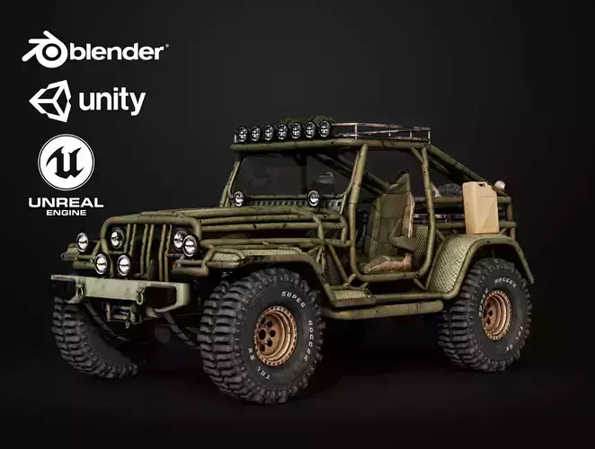 This is a 3D model of an army truck, ready to use in games or films.