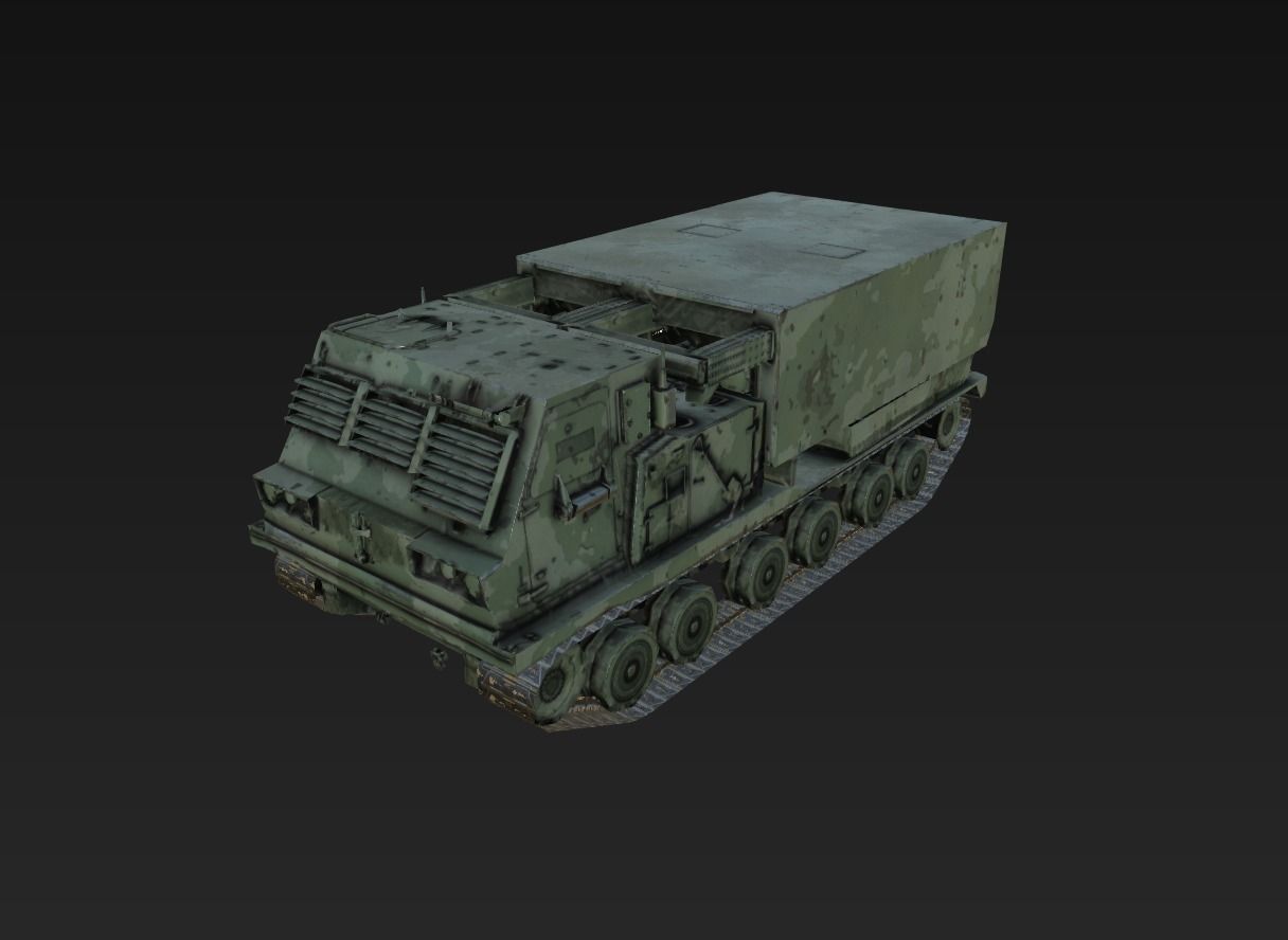 MLRS M-270, military tank with rocket launcher. Wheel and rocket pocket and rockets parents on vehicle. Model is ready for mobile games. Pack include mobile shader with albedo-rougness, normal map, and PBR textures(albedo,height, metallic, normal, roughness)