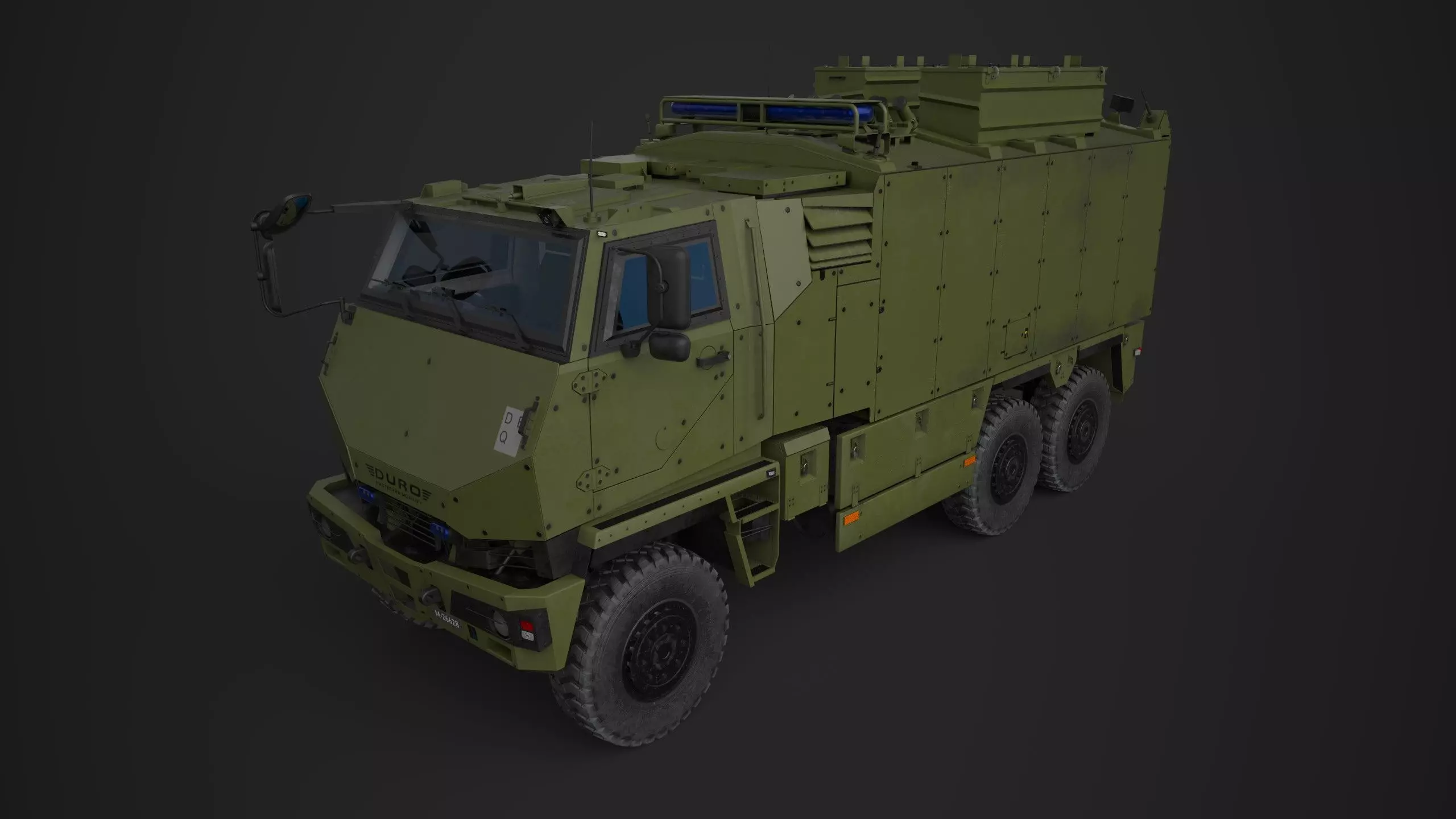 The DURO (Durable Robust) is a series of wheeled, multi-purpose military transport vehicles produced by General Dynamics European Land Systems/MOWAG in both four and six wheel drive.[citation needed] It was initially developed for Switzerland by Bucher-Guyer AG in Niederweningen, Switzerland