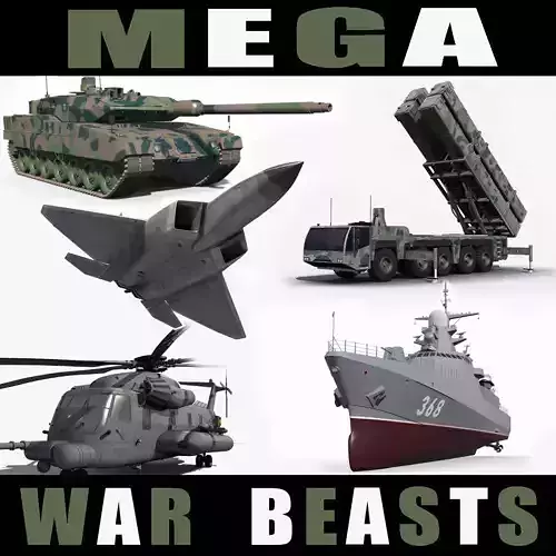 Photorealistic Nato animated 3d models, including Leopard 2 tank, Sikorsky MH-53 Pave Low helicopter and Lockheed Martin F 22 Raptor jet plane, Missile Launcher, Project 22160 Patrol Ship. Ready to use.