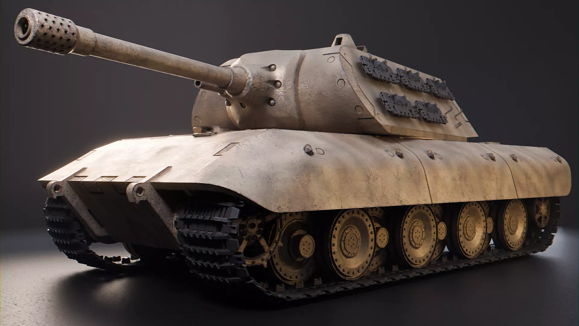 The Panzerkampfwagen E-100 was a superheavy tank project developed by the nazi Germany during the second world war. The E-100 was part of the panzer E series, which was an attempt of the Germans to standardize the fabrication and assembling vehicle lines and replacing their actual tanks. The tank was designed by Adler company following the Wehrmacht requeriments. Its design started during 1942, and its assembly started in the middles of 1943. But due to the Allied advances in the war and the Germany’s resourses lack, Hitler ordered to stop the Superheavy tank projects and the work on the E-100 continued with a low priority, with only 3 Adler employees working on it. The E-100 was never finished and the prototype was captured by the Brithis forces, sent to England to being studied and finally scrapped during 1950s.