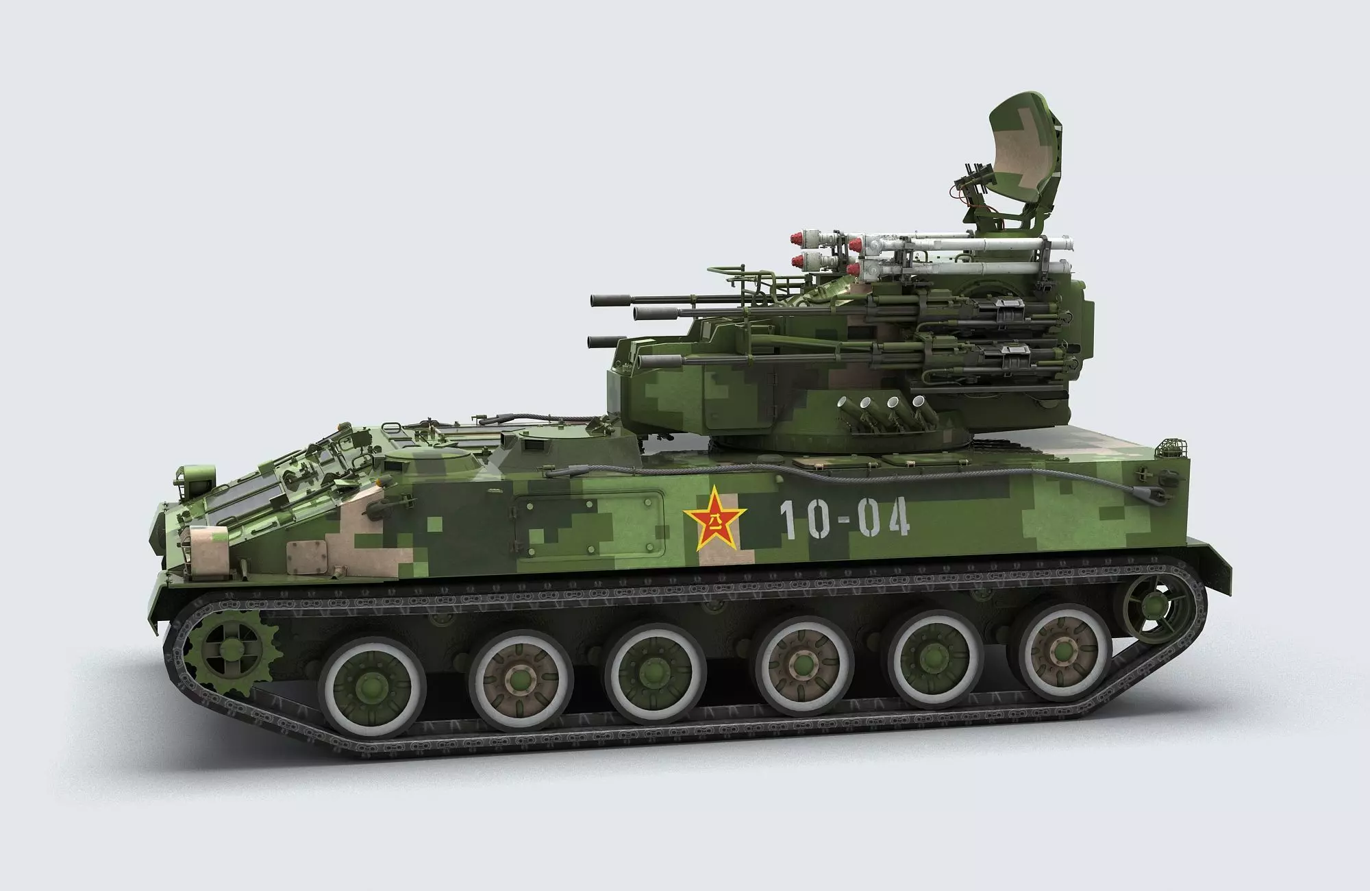 Detailed 3D model of Chinese PGZ-04A 25mm sel-propelled anti-aircraft gun.Modeled in 3ds Max 2020.Final images rendered V-Ray material.