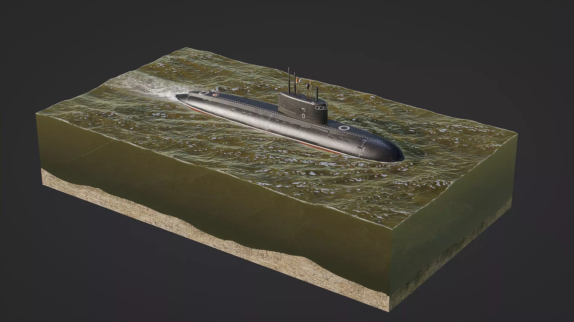Low poly model of Multi-Purpose Diesel-Electric Submarine of the project 636.3 Varshavyanka.
