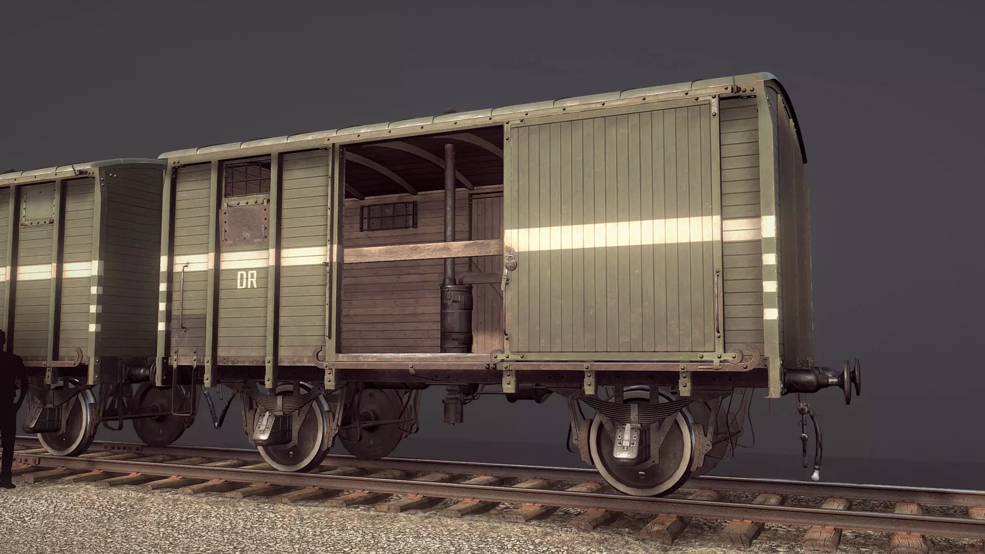 Railway Covered Goods Wagon 18T Vr5 DR Green Low-poly 3D model