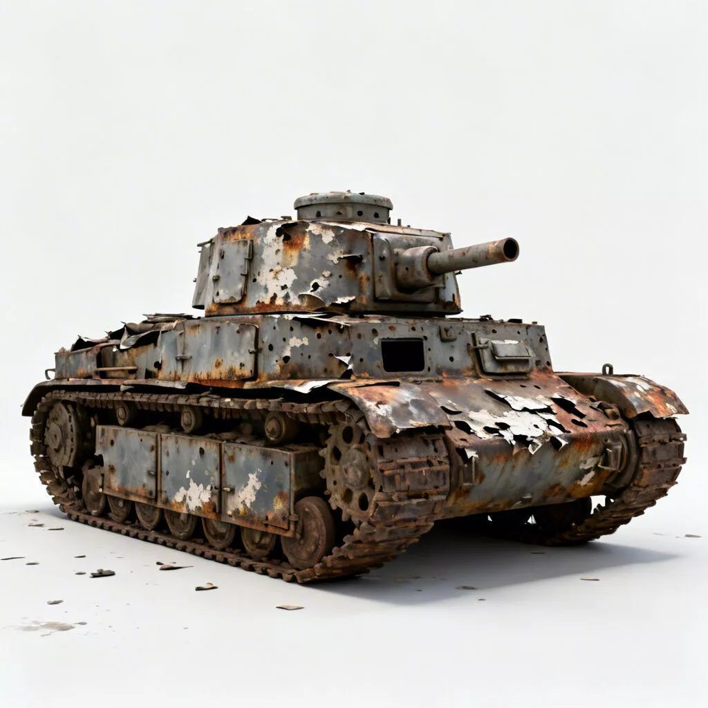 Add an authentic, battle-scarred, and haunting historical presence to your next digital environment with this striking destroyed tank asset.