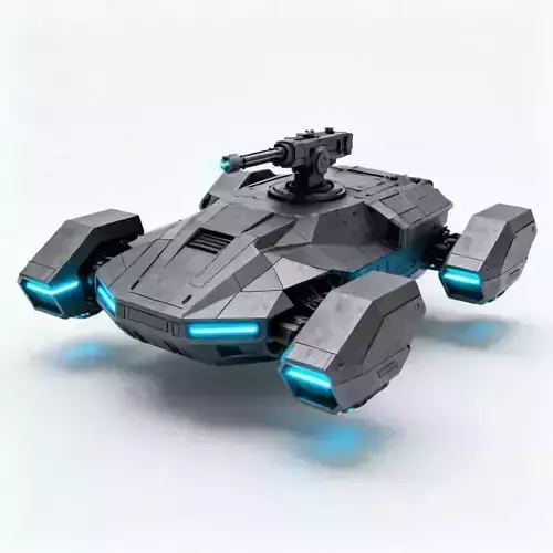 The Overall Concept This asset is a futuristic combat vehicle that uses anti-gravity technology to float above the ground. Unlike traditional tanks with heavy tracks, this machine glides effortlessly, making it perfect for high-tech war games.