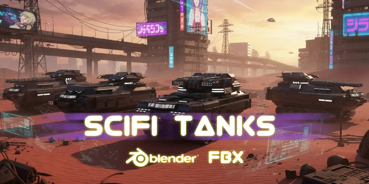 Sci-Fi Tanks Collection Modeled with Blender and Textured with Substance Painter.