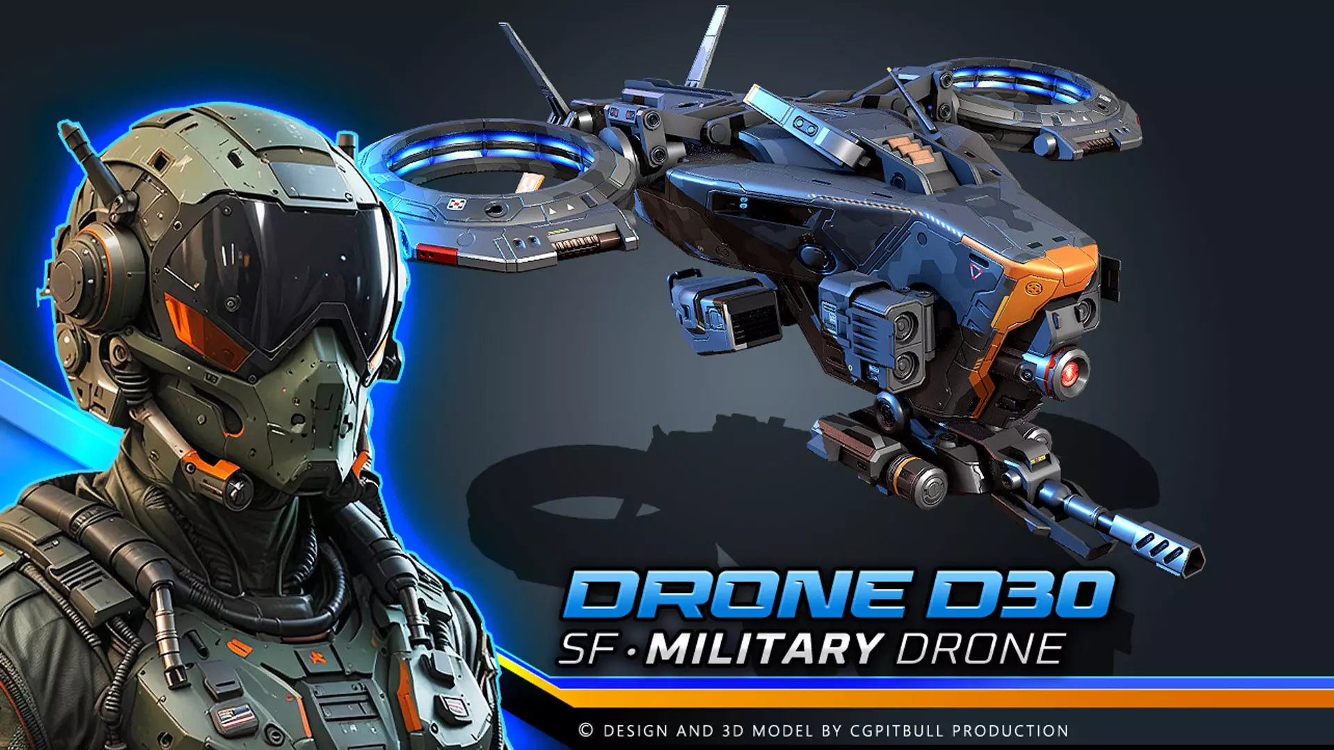 Attention: THIS MODEL IS NOT INTENDED FOR 3D PRINTING, NO Stl files included. This Original package contains one SF - DRONE D30. _This design is my own concept, does not repeat any existing work. You can use it without a doubt about copyright._Combining the color schemes + the color masks you can configure dozens of original spaceships.