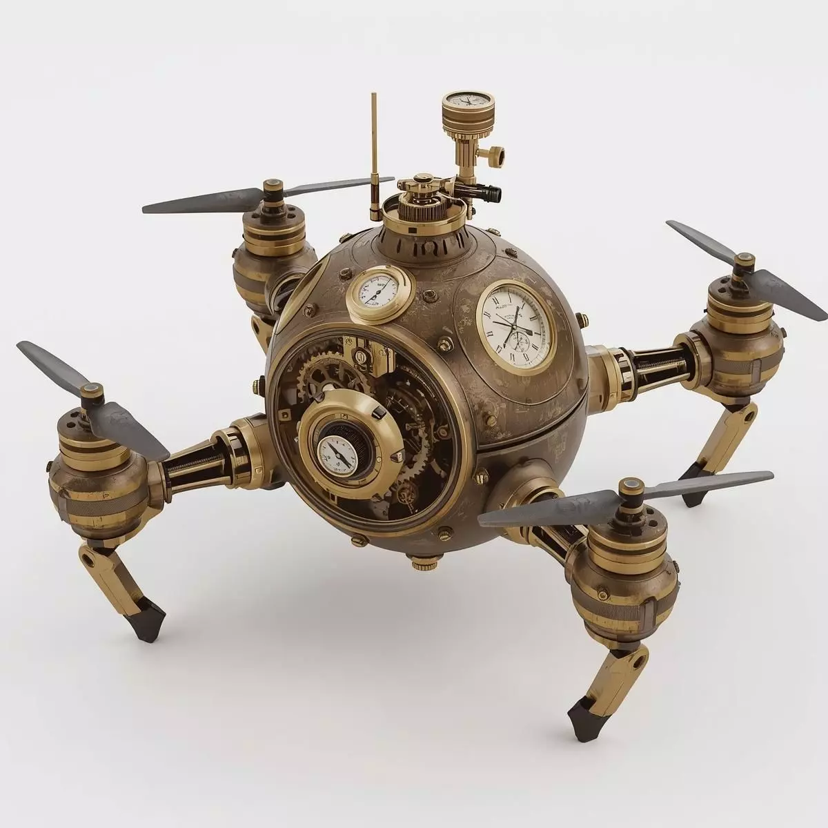 Tagssteampunk, drone, robot, maintenance, quadcopter, victorian, industrial, brass, gears, clockwork, 3d model, game asset, prop, repair bot